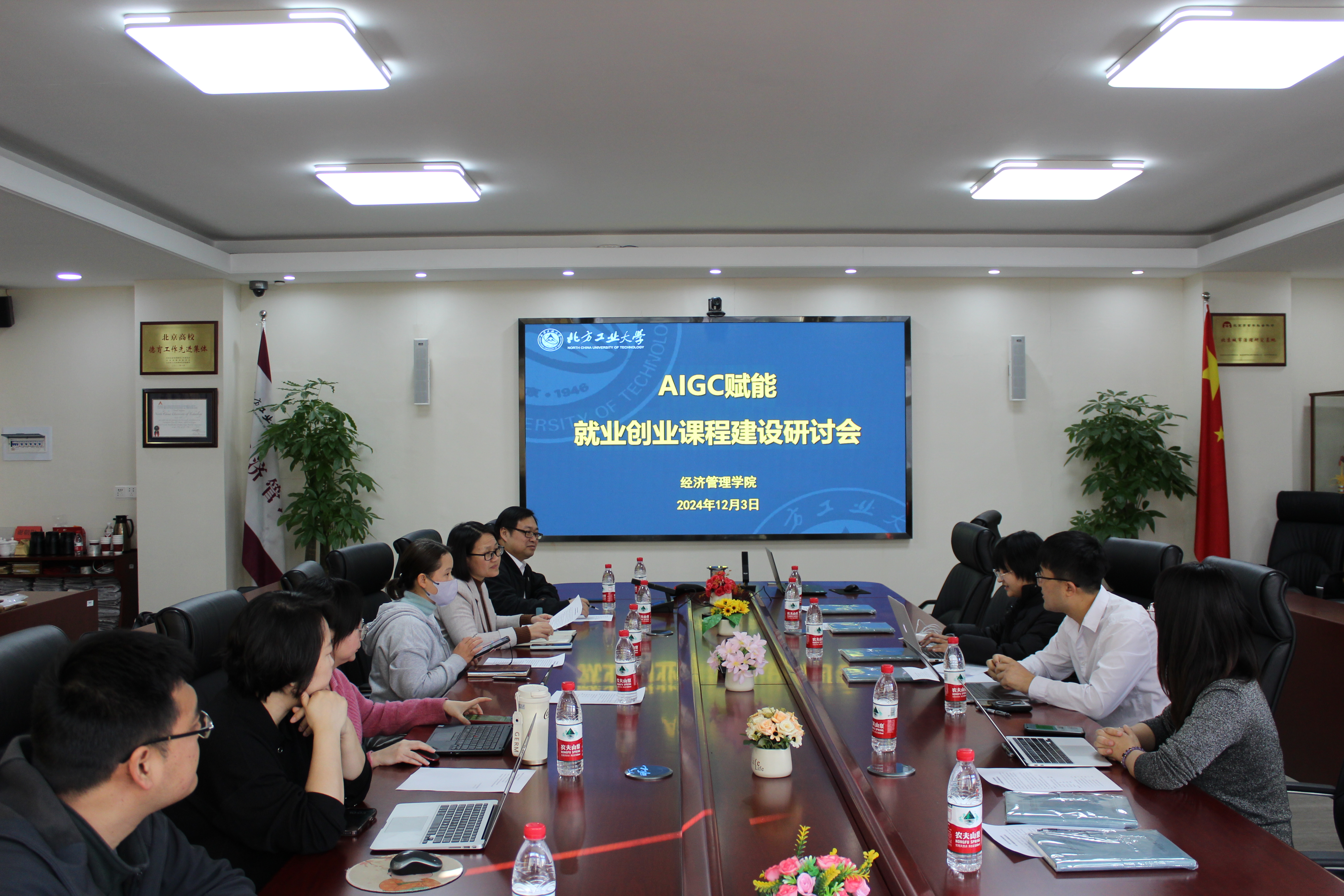 12月3日,sunbet在励学楼201联合两家企业召开AIGC赋能就业创业课程建设研讨会。sunbet党委副书记王帏、副院长蒋贵凰、北京宇乐树科技有限公司联合创始人史敏思、北京超智能科科技有限公司CEO杨建刚、商业化合伙人郝夏男,以及sunbet刘冰、段晓红、张泽圣等老师参与研讨,实验中心主任兼创新创业基地负责人牛天勇主持。