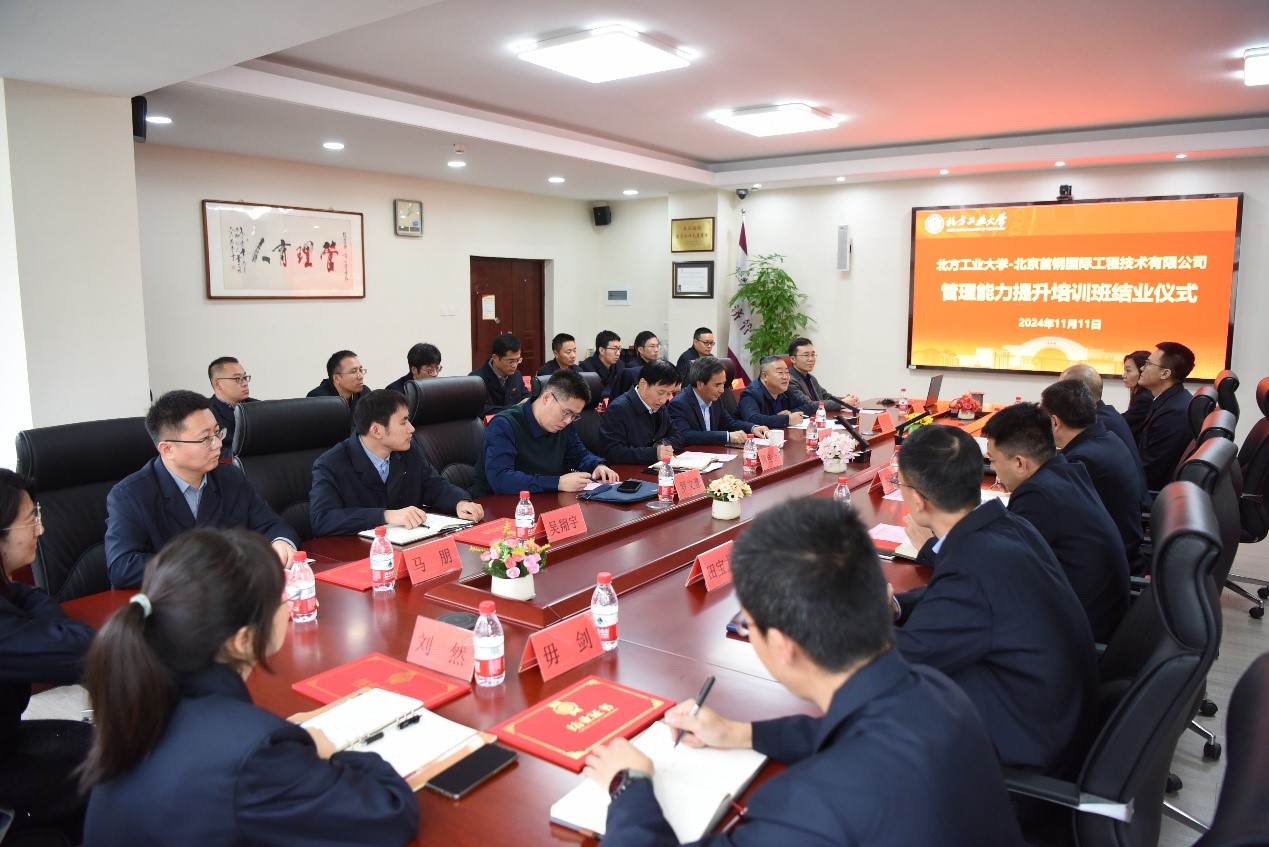 2024年11月11日下午,北方工业大学—首钢工程技术公司“管理能力提升培训班”结业仪式在北方工业大学励学楼201会议室隆重举行。我校党委常委、副校长王建稳,首钢工程技术公司党委书记、董事长吴礼云,首钢工程技术公司组织人事部部长朱小军出席,我校sunbet院长赵继新、sunbet党委书记谢朝阳、继续教育学院院长熊佳全、科研院副院长罗文豪以及培训班全体学员参加了结业仪式。仪式由我校sunbet院长赵继新主持。