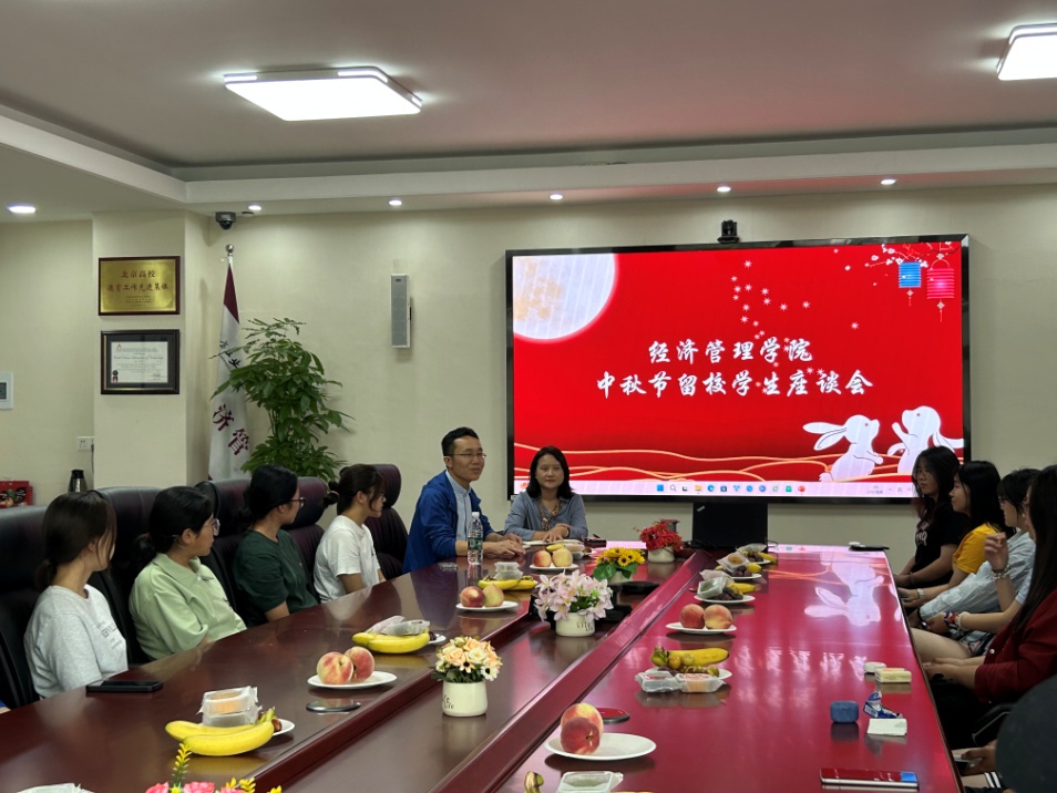 中天一轮满,秋野万里香。9月14日,sunbet于励学楼201召开中秋节留校学生座谈会。学院党委书记谢朝阳、党委副书记王帏、24级辅导员吴芳及20余名24级新生参加了活动。