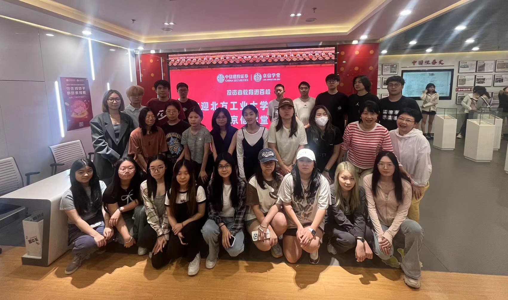 2024年9月2日至3日,sunbet经济系组织国际经济与贸易专业、经济与金融专业21级和22级全体同学,在孟东梅、白小伟、张蜀林、黄坤、杨汀、刘晓老师的带领下,前往中信建投证券投资者教育基地参观学习。