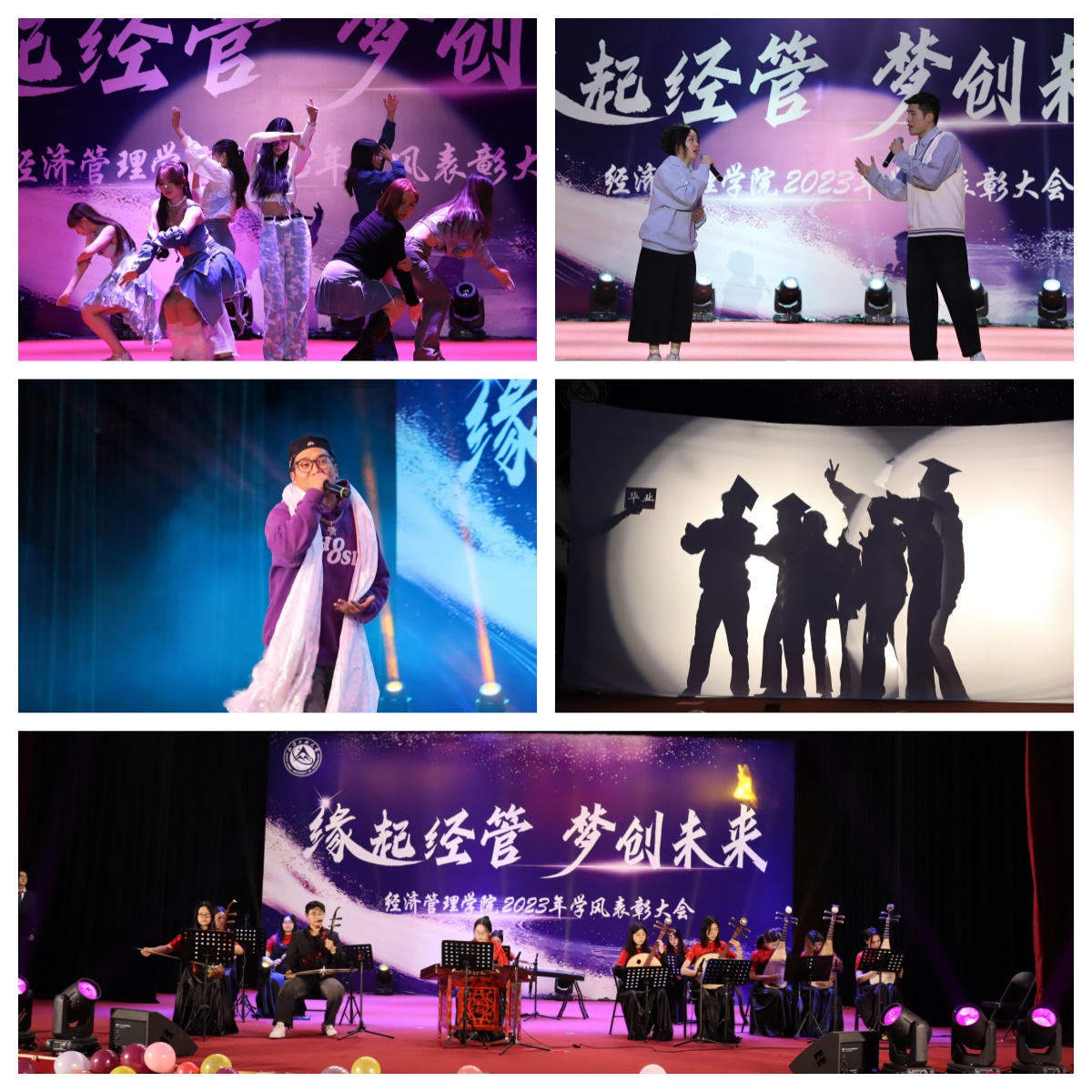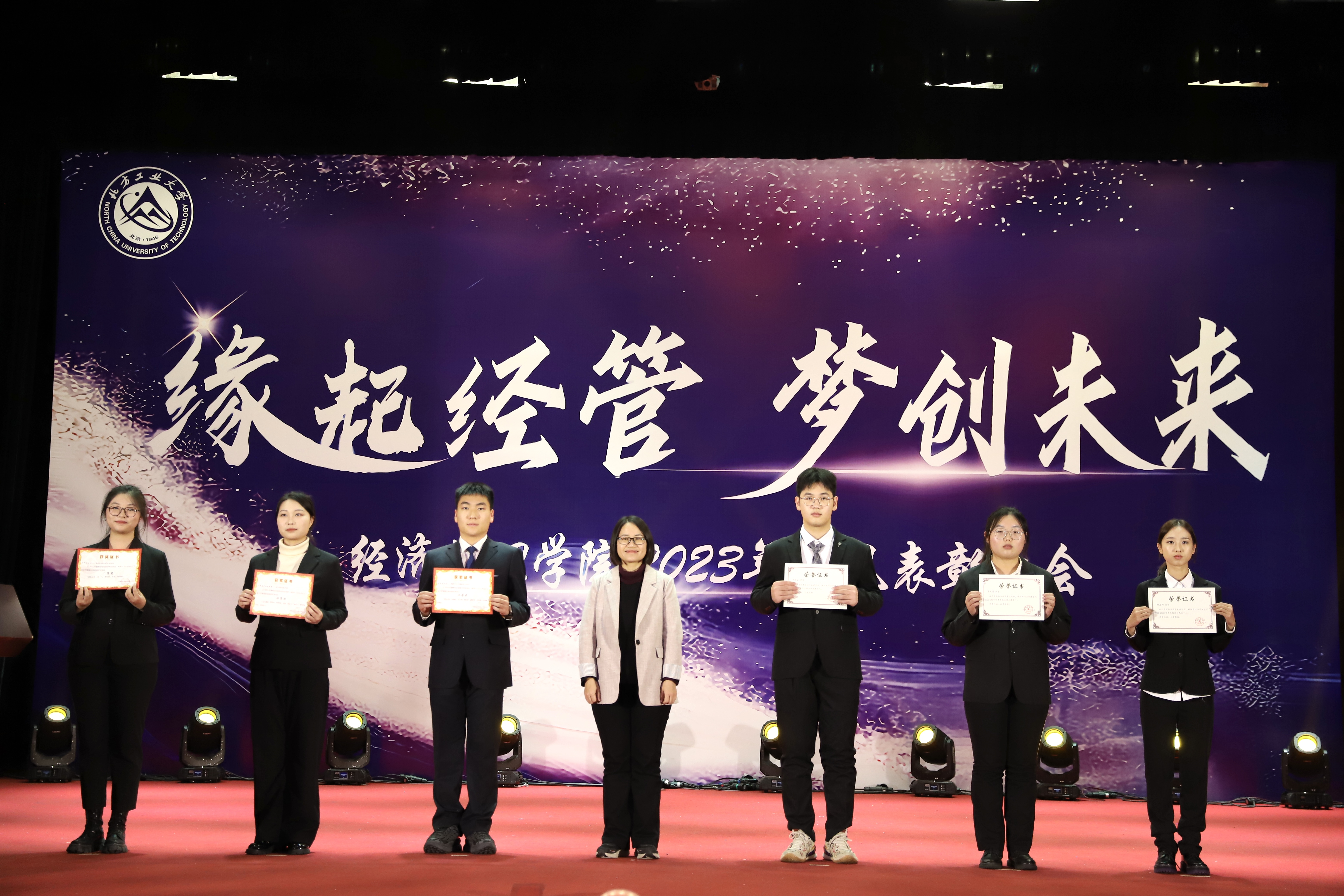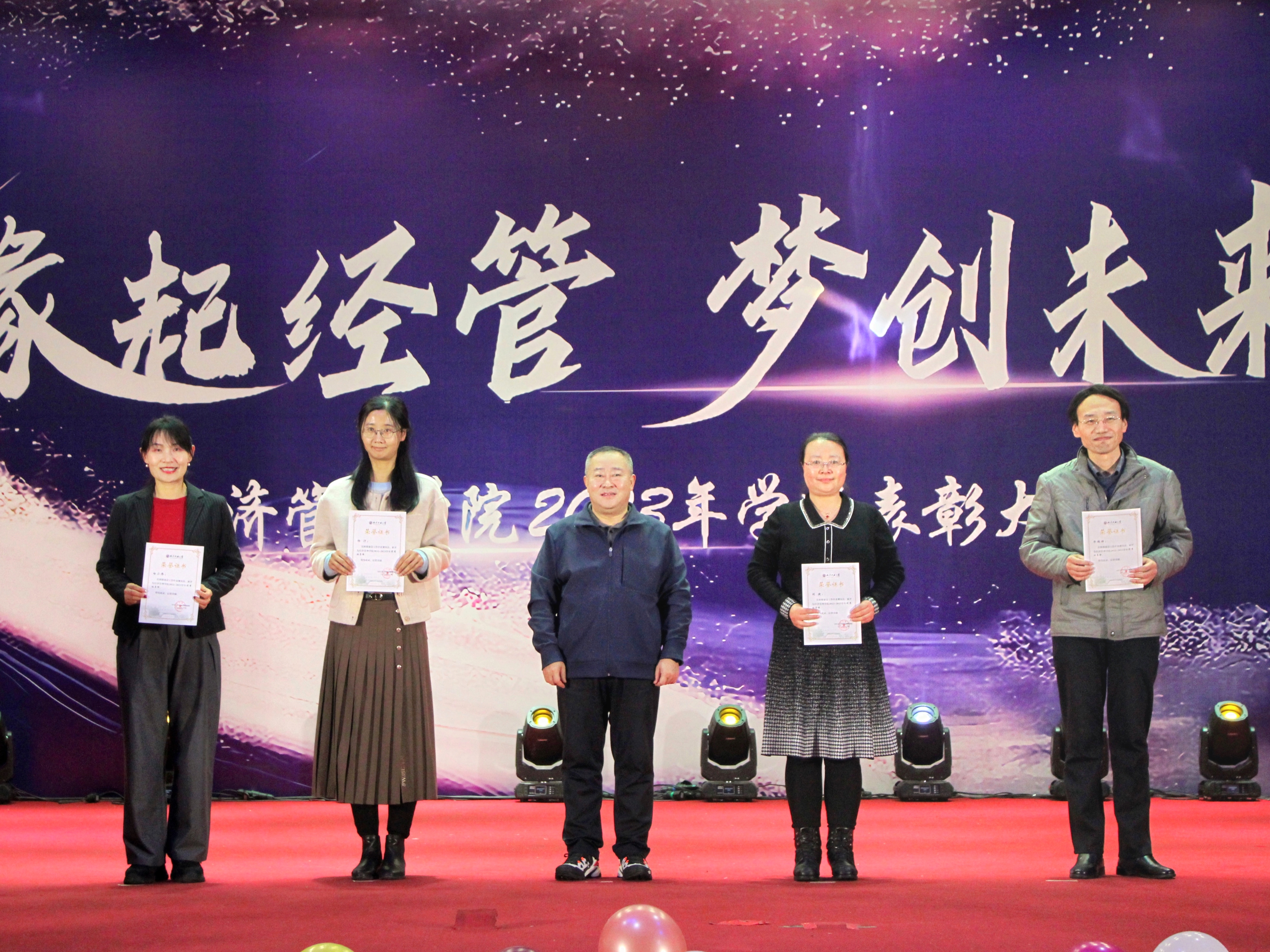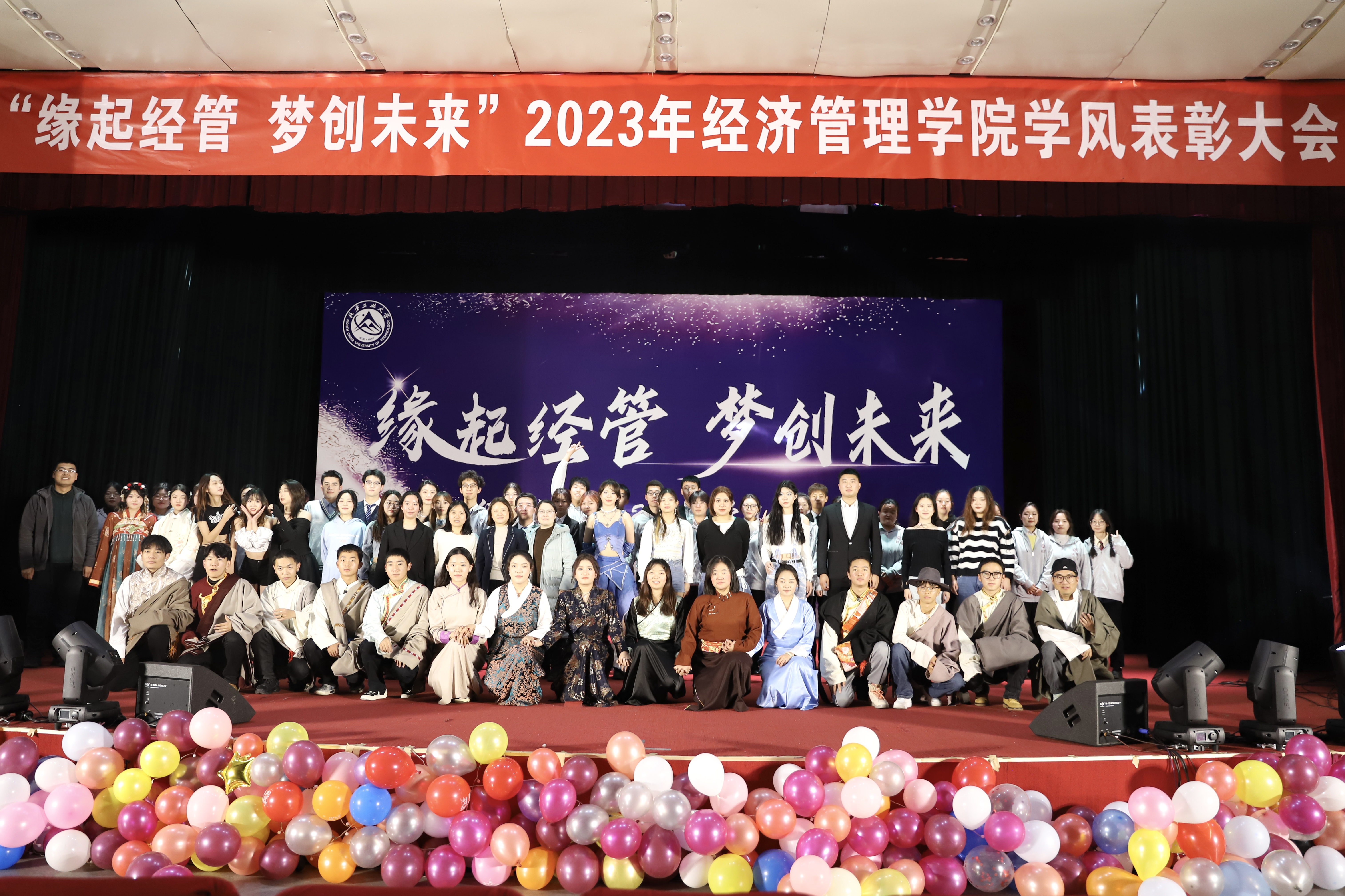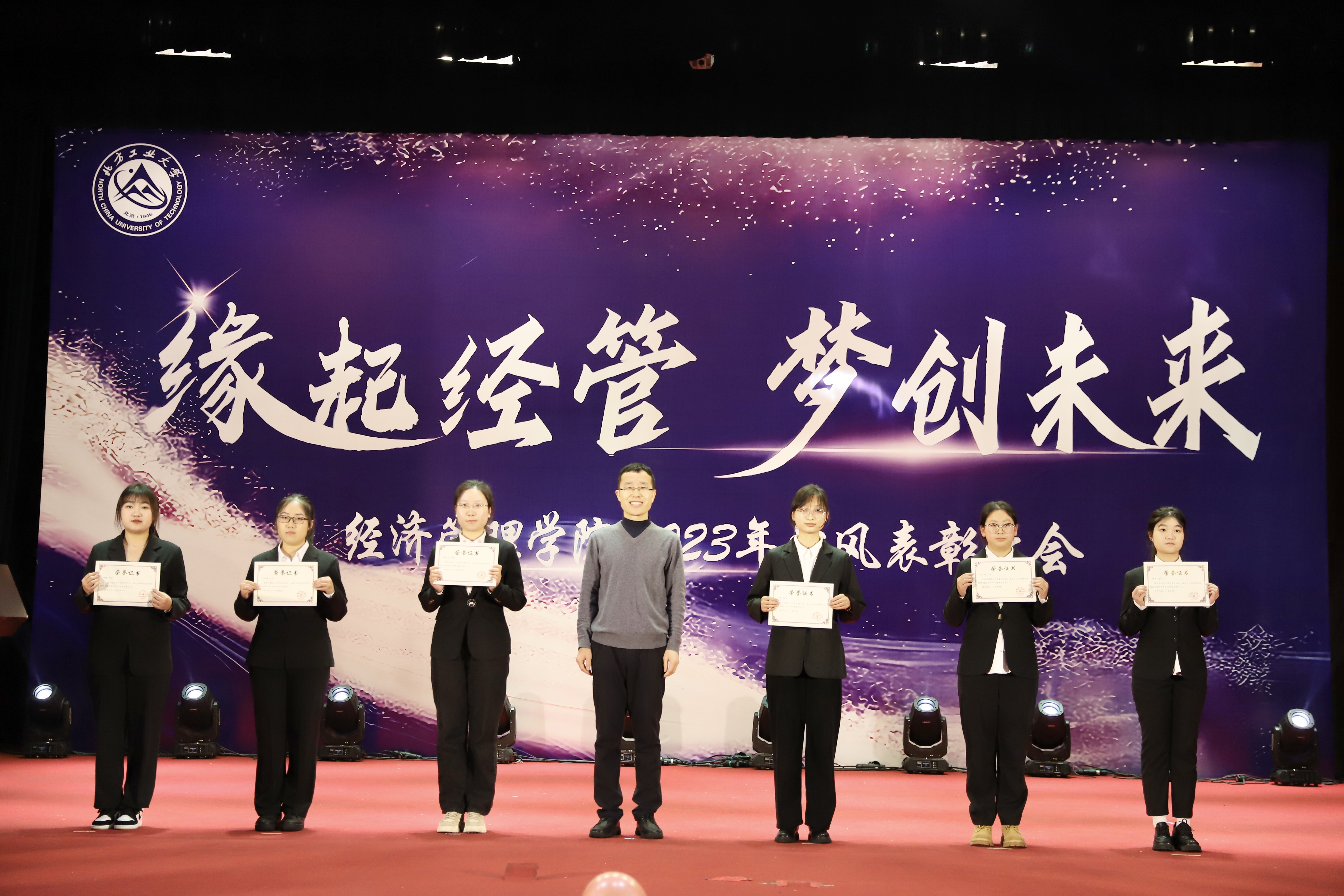 为加强学风建设,总结经验,展现学子风采,激励学院广大师生保持昂扬向上的奋斗姿态,12月14日晚,sunbet在图书信息楼报告厅举办“缘起经管 梦创未来”2023年学风表彰大会。校学生工作部部长孙宗瑞,学院领导班子全体成员,各系主任、班导师、辅导员,22级、23级全体学生参加了活动。