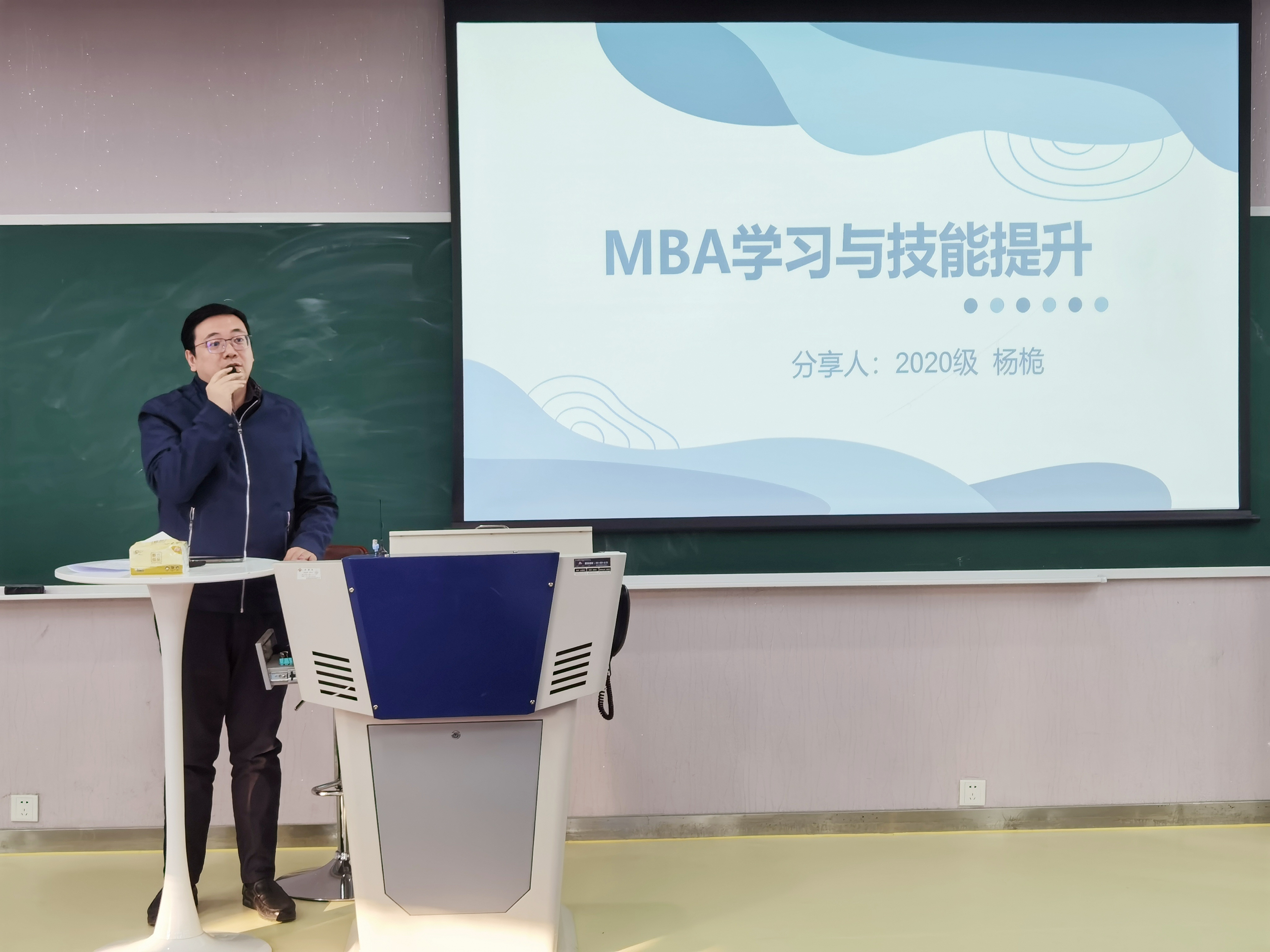 杨桅任北京市朝阳区房屋管理局科长,组织建立了朝阳区物业管理协会并主持拟定《朝阳区物业管理工作指导手册》。他从课程学习概况、技巧性技能、思维性技能、实践性技能、思考与展望五个方面论述了MBA学习与技能提升。在MBA课程概况中详细介绍了MBA课程的务实性、复合性和应用性,培养实操技能,提升职业竞争力;在技巧性技能中将人力资源知识、互联网知识、财会金融知识串联带入MBA学习中,使管理与人、时代、经济同行;在思维性技能中,主要培养合理运用资源、理顺各方面关系、培养管理思维并应用到具体工作实践中。最后,杨桅希望大家学以致用,在工作和生活中有意识运用管理学的知识。