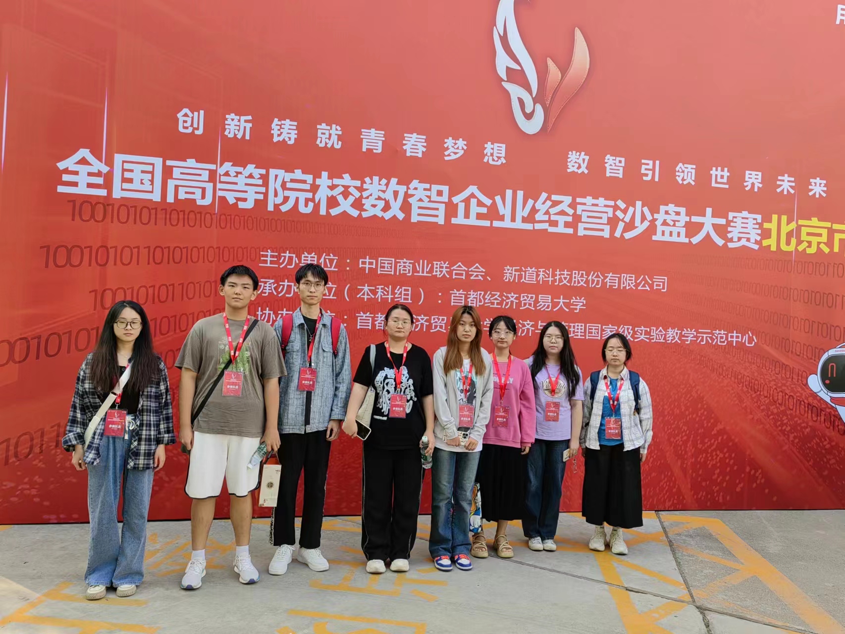 我校会21级李佳琳、翁贻龙、李黎阳,会22级张浩翔、徐博扬、韦怡童、郝书瑶、刘蔚璞同学通过第一阶段校级选拔后,组成参赛队A06和B11,与其他高校23支队伍一起入围北京市选拔赛。他们置身商业实战场景,真实体验商业竞争的激烈性,最终分获北京市赛二等奖和三等奖,北方工业大学A06更代表北京市出征郑州举办的全国总决赛。
