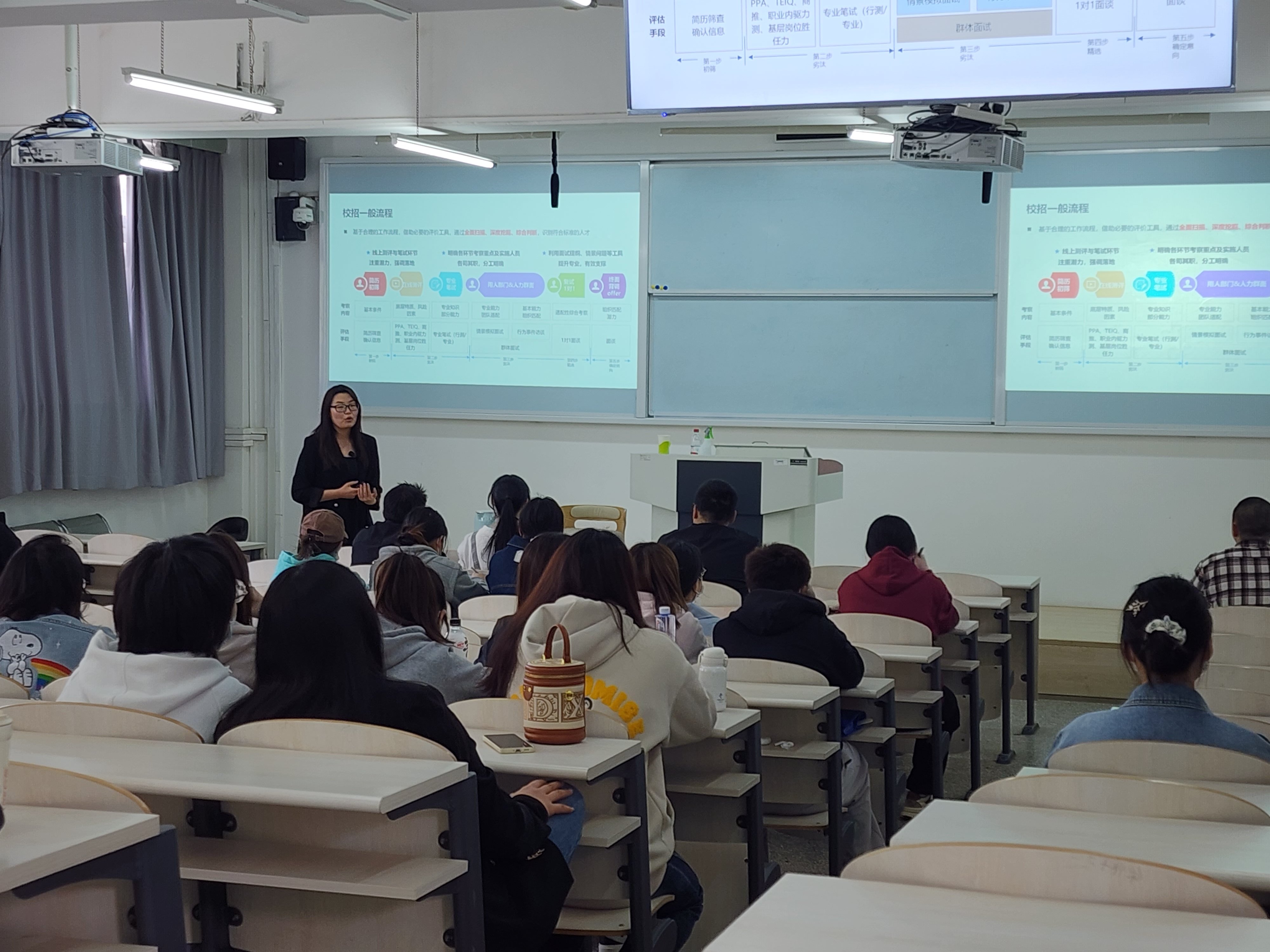 4月14日下午,sunbet组织2023届毕业生在励学楼228教室举办求职面试能力提升专题讲座,特别邀请了我院2014届优秀研究生毕业生,现任北培人力资源部经理雷青青女士,返校为毕业班学生讲解当下求职面试中的注意事项和能力提升路径。学院院长赵继新出席并主持了讲座。