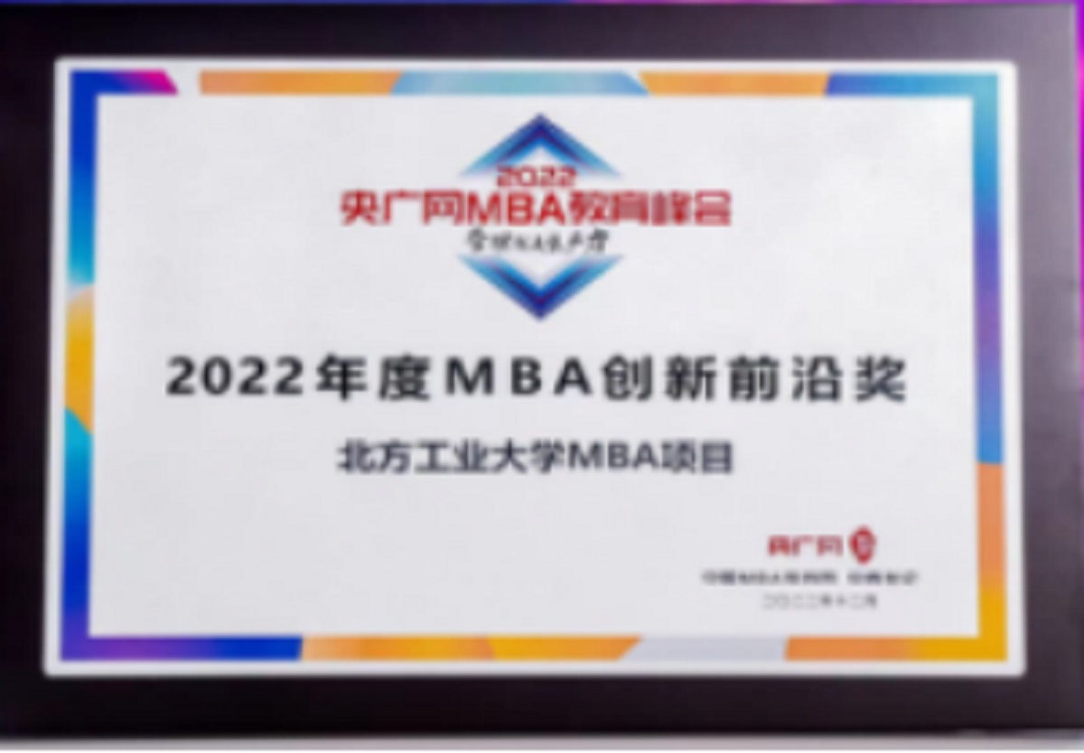 央广网|北方工业大学MBA项目站在时代前沿,不断创新实践,与时俱进,走出了具有中国特色的商科教育之路,荣获“2022年度MBA创新前沿奖”。
