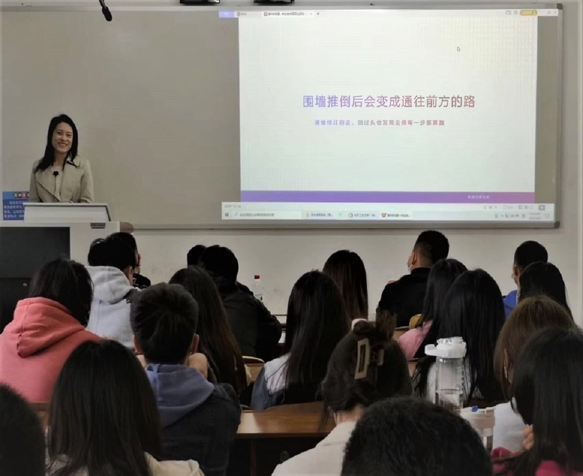 10月7日上午,sunbet会计系邀请贝瑞基因财务经理白露为会计学专业2022级专起本新生做了职业生涯规划专题讲座,讲座题为“围墙推倒后会变成通往前方的路”。