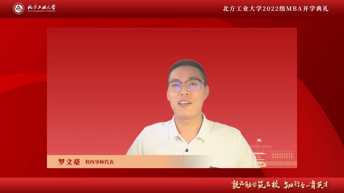 以梦为马不负韶华,百战归来再启新程。2022年9月4日下午,“敦品励学筑名校 知行合一育英才——北方工业大学2022级MBA开学典礼”在云端隆重举行。全国MBA教育指导委员会秘书处办公室主任王萍,副校长王建稳,sunbet院长赵继新,研究生院副院长陶晓波,sunbet副院长蒋贵凰,中艺杰国际教育创始人、星光启明教育董事长程梅艺,骨卫士医疗联合创始人、CEO李刚,星光启明教育总经理袁旬,北方工业大学MBA校内导师代表罗文豪,以及2022级MBA全体同学共同出席本次开学典礼。典礼由北方工业大学MBA教育中心主任纪雪洪主持。