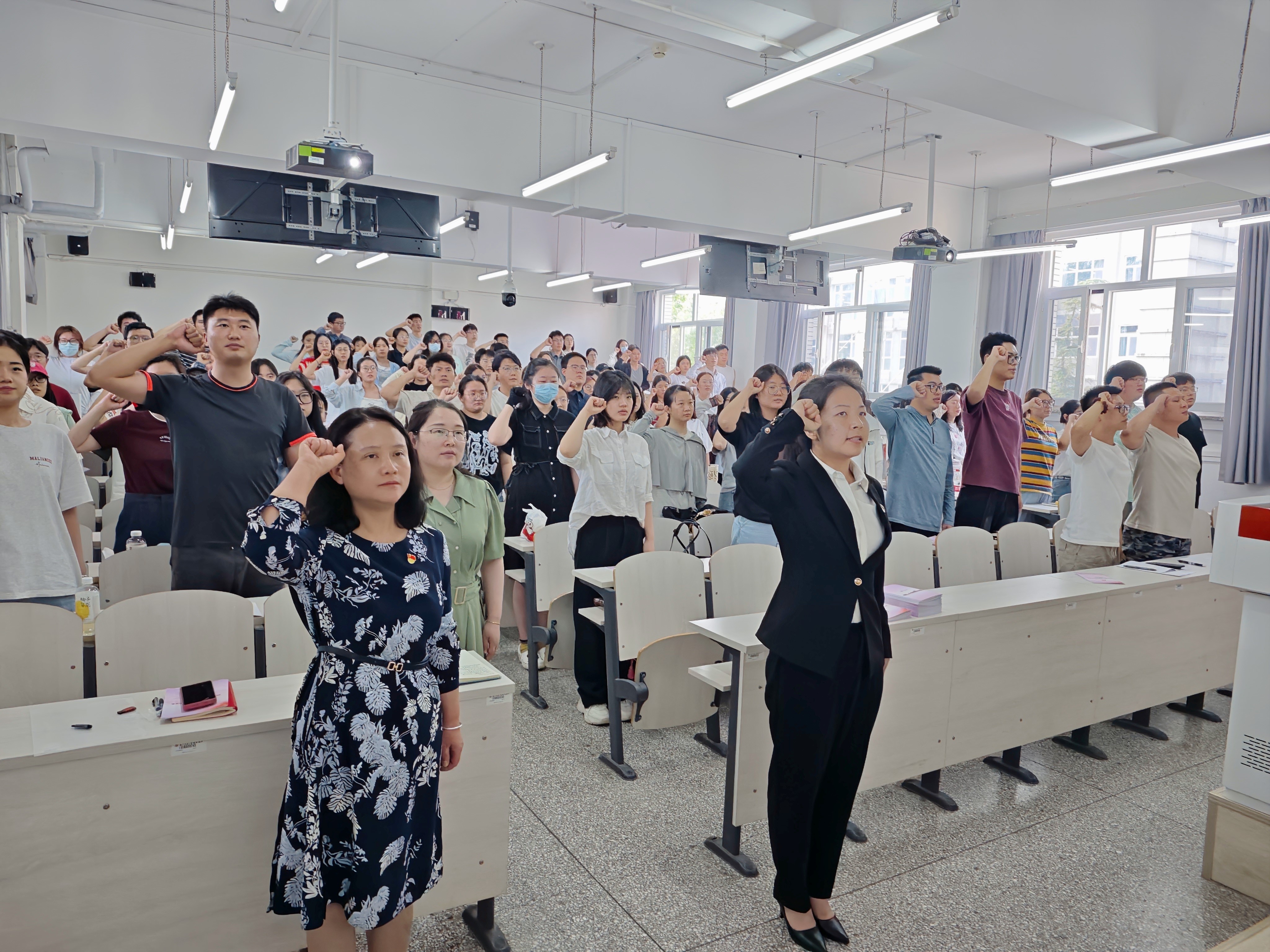 最后,毕业生党员代表高妮领誓,与会全体党员重温入党誓词,“我志愿加入中国共产党……”,铿锵有力的誓言在会场回响,是承诺亦是全体毕业生党员对母校嘱托的响亮回应。