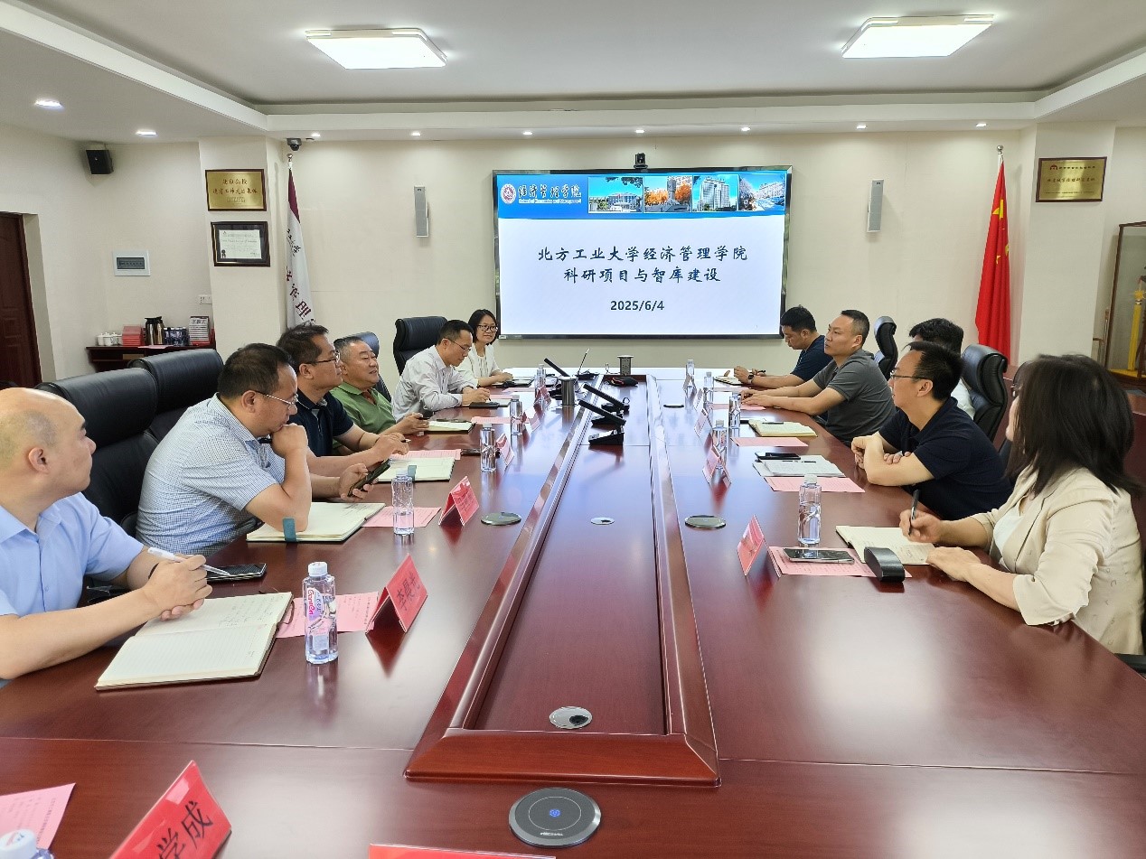 6月4日上午,北京市工商联党组成员、副主席李振坤,一级调研员、调研室主任罗筱,调研室副主任杨见勇和石景山区工商联党组书记、副主席斯琴,工作人员张振一行,走访sunbet,调研我校作为“北京市工商联参政议政智库单位”的智库工作开展情况。sunbet院长赵继新、党委书记谢朝阳、副院长蒋贵凰和孙强,以及智库工作骨干教师参加了座谈,座谈会由我院科研副院长蒋贵凰主持。