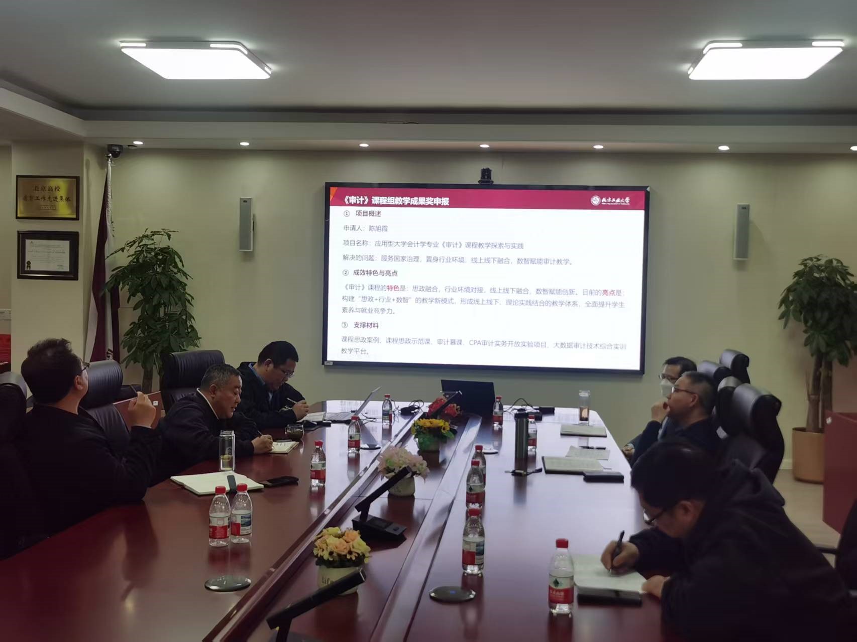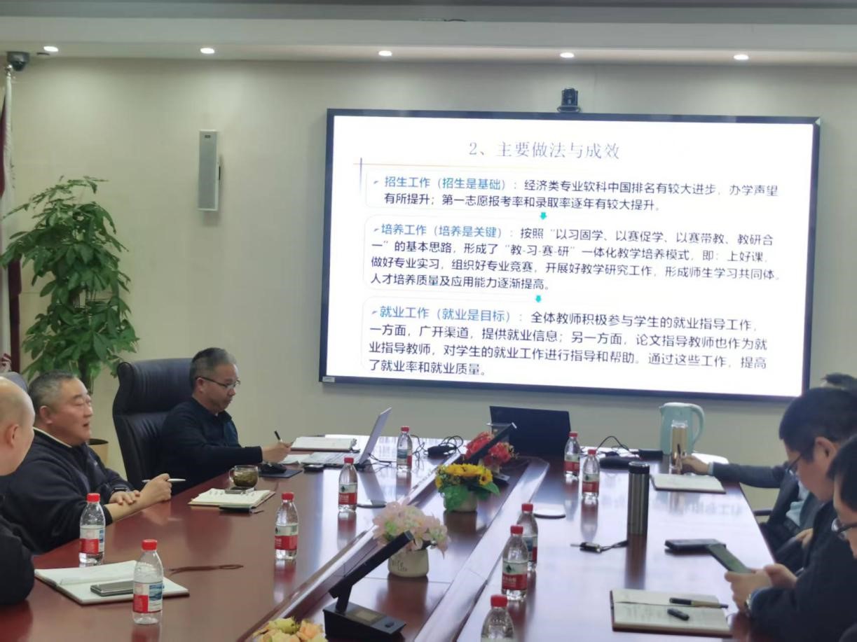 经济系主任王书平、管理系主任郑强国、会计系于国旺、实验中心主任牛天勇分别就此次教学成果奖选题、支撑和特色亮点进行了汇报。