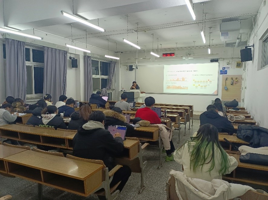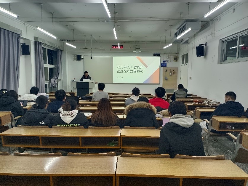 报告结合《产业经济学》课程产教融合教学要求、学生的专业情况、人工智能产业的发展趋势以及学生未来的就业职业选择,主要介绍了人工智能产业主要细分赛道、人工智能产业投融资趋势及格局、人工智能产业细分赛道融资活跃度、人工智能产业细分赛道资本吸引能力、人工智能产业投融资新风向等内容。最后提问讨论环节,马兵先生与同学们就金融专业未来的就业前景,金融机构(证券公司、基金公司等)应届生进入门槛、同学们未来的职场选择与提前准备等方面进行了深入充分的交流。