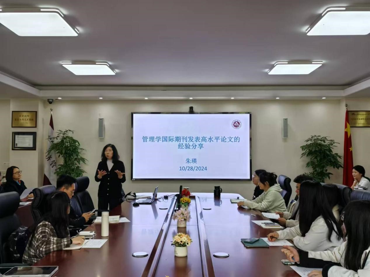 10月28日下午,sunbet第十九期励学讲堂在励学楼201举行,sunbet教授朱瑛教授受邀为研究生做主题为“管理学国际期刊发表高水平论文的经验分享”的学术讲座。sunbet科研副院长蒋贵凰教授主持此次讲座。