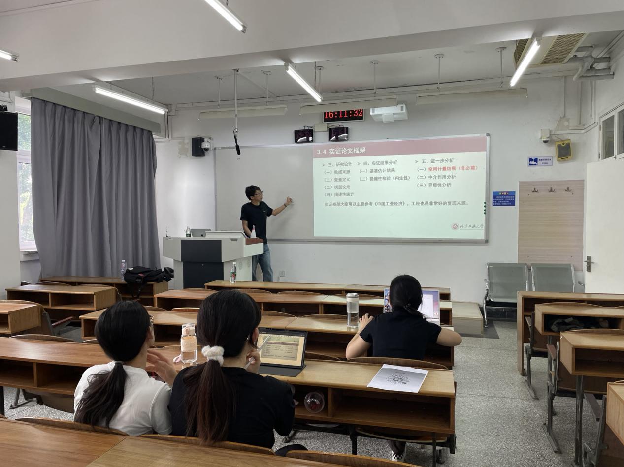 在本次讲座中,王星同学以其深厚的学术背景和丰富的申博经验,为在场的同学们带来了一场内容丰富、深入浅出的分享。他结合个人申请博士的亲身经历,详细阐述了各个学校申请博士的基本流程、注意事项以及常见误区。在实证论文写作方面,王星同学从选题、数据收集与处理、方法选择、论文框架构建等多个角度进行了深入讲解。这些实用的建议使同学们对实证论文的写作过程有了更清晰的认识,也提升了他们的写作能力。最后,王星同学结合自己已发表的论文,分享了论文撰写与投稿心得,鼓励大家提前规划时间并认真投入论文写作任务,同时也要积极投稿,不要存在畏难心理。