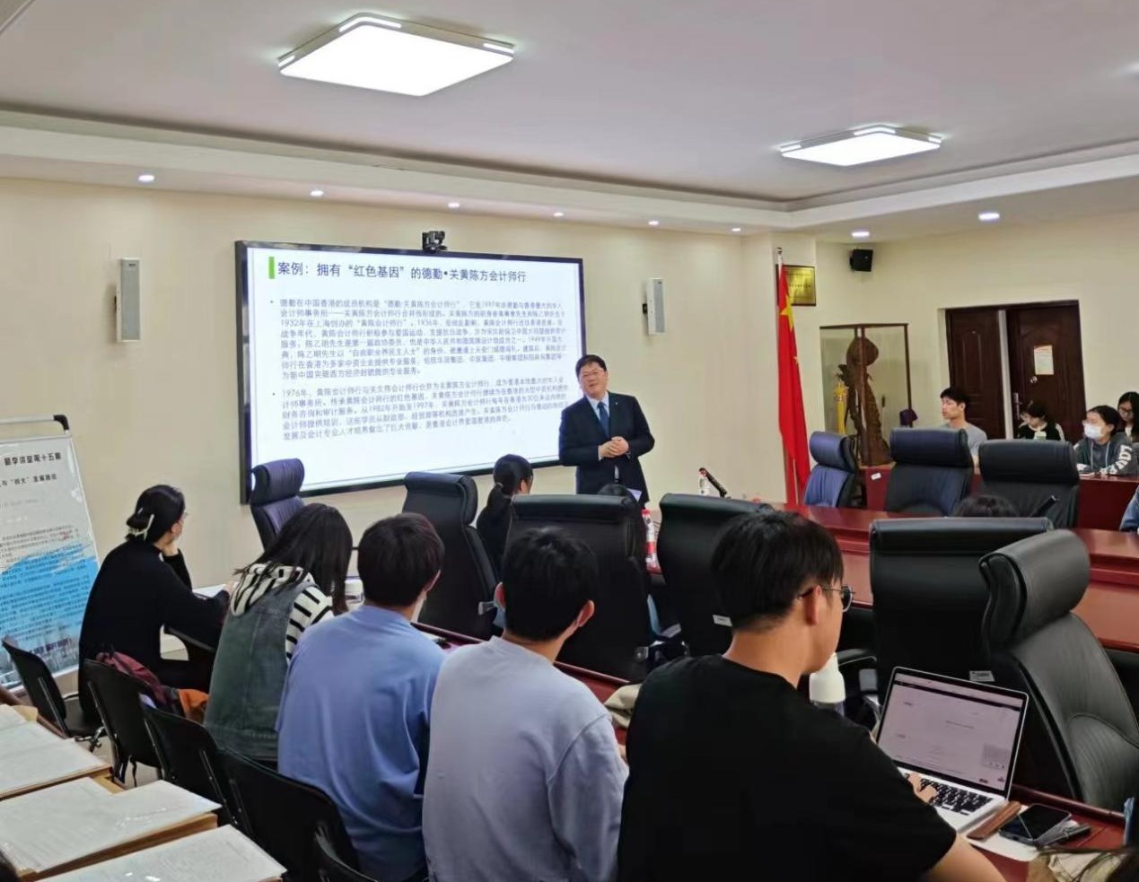 陈波博士分别从收入构成、业务领域、组织架构以及运营性分拆等诸多方面阐述了“四大”会计师事务所的业务类型与管理结构,并辅以案例分析加深同学们的理解。