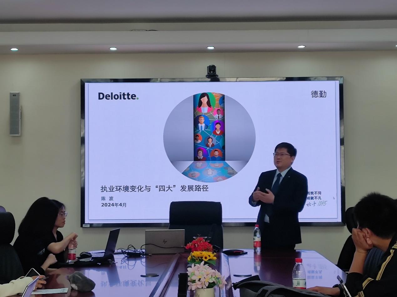 陈波博士的讲座精彩纷呈,内容丰富实用,同学们受益匪浅。他带领同学们了解了“四大”的管理结构、业务体系,进入四大的能力要求等等,加深了同学们对“四大”的理解和认识,坚定了同学们的职业发展信心,对同学们的职业发展有重要意义。
