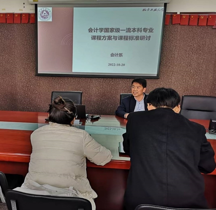 研讨会围绕《会计学国家级一流本科专业课程方案与课程标准研究--北方工业大学的实践探索》拟订稿进行了交流讨论。本着“思政铸魂、坚守根本、科技赋能、高质发展”的专业教育教学改革思路,根据北方工业大学“高水平应用型大学”办学定位的内涵和首都“四个中心”定位,拟订稿主要从培养目标定位、课程基本原则、课程目标框架、课程标准说明、课程实施方案共五个方面对我校会计学国家级一流本科专业课程方案与课程标准进行了总体规划和标准设计。