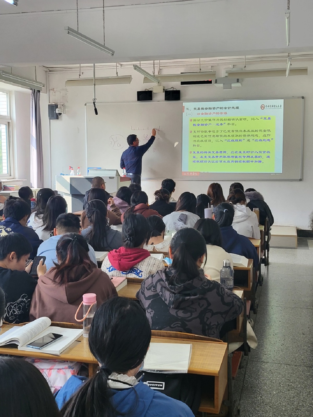 课堂上,李教授讲述了企业对外投资的类别,以及会计准则对各类投资的核算要求。结合自身丰富的上市公司治理经验,李教授生动形象地通过企业的投资业务实践,帮助学生理解“交易性金融资产”的会计处理及其背后的经济意义。李教授的讲解条理清晰、详略得当,理论与实际相结合,充分调动了同学们的学习积极性与主动性,引发同学们对企业投资业务的深度思考。通过本次活动,课堂教学实现了校内与校外、科研与教学的联动,开拓了同学们的专业视野,得到学生的一致好评。