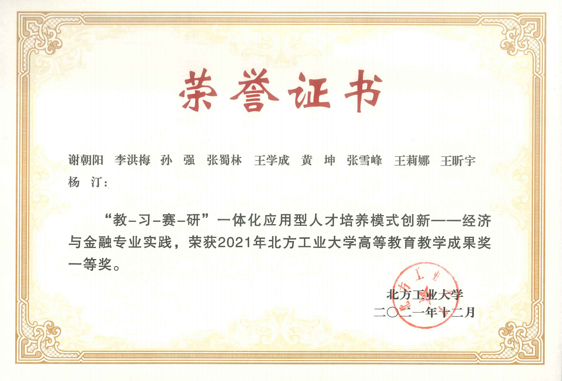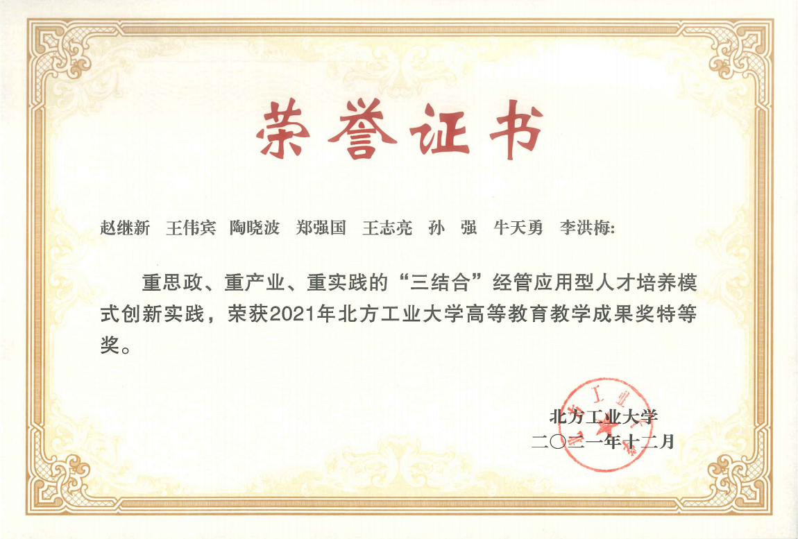 北方工业大学教学成果一等奖 |
