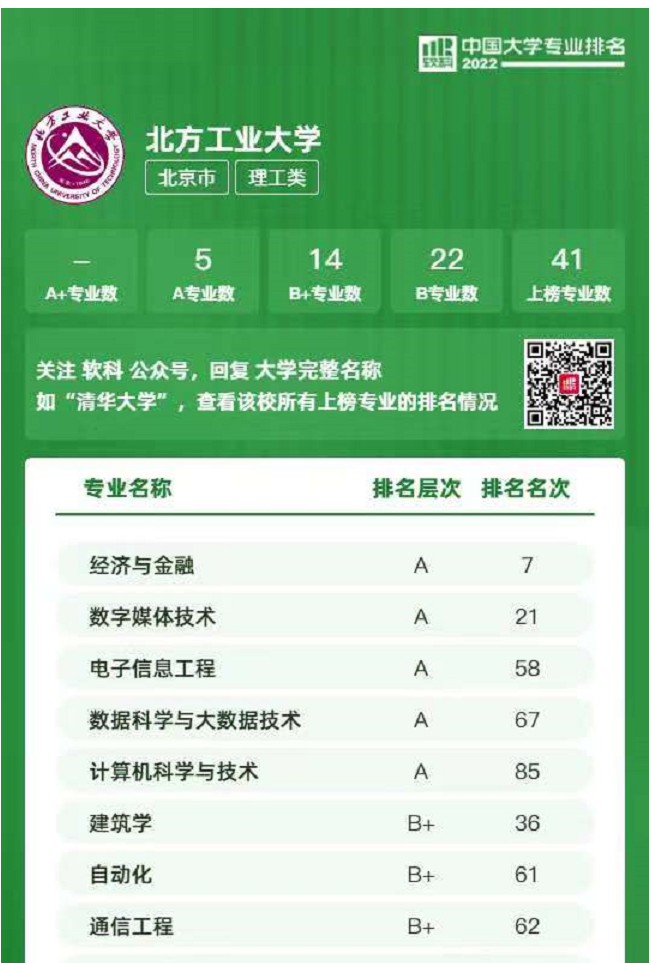 2022年软科中国大学专业排名-A类,全国第七