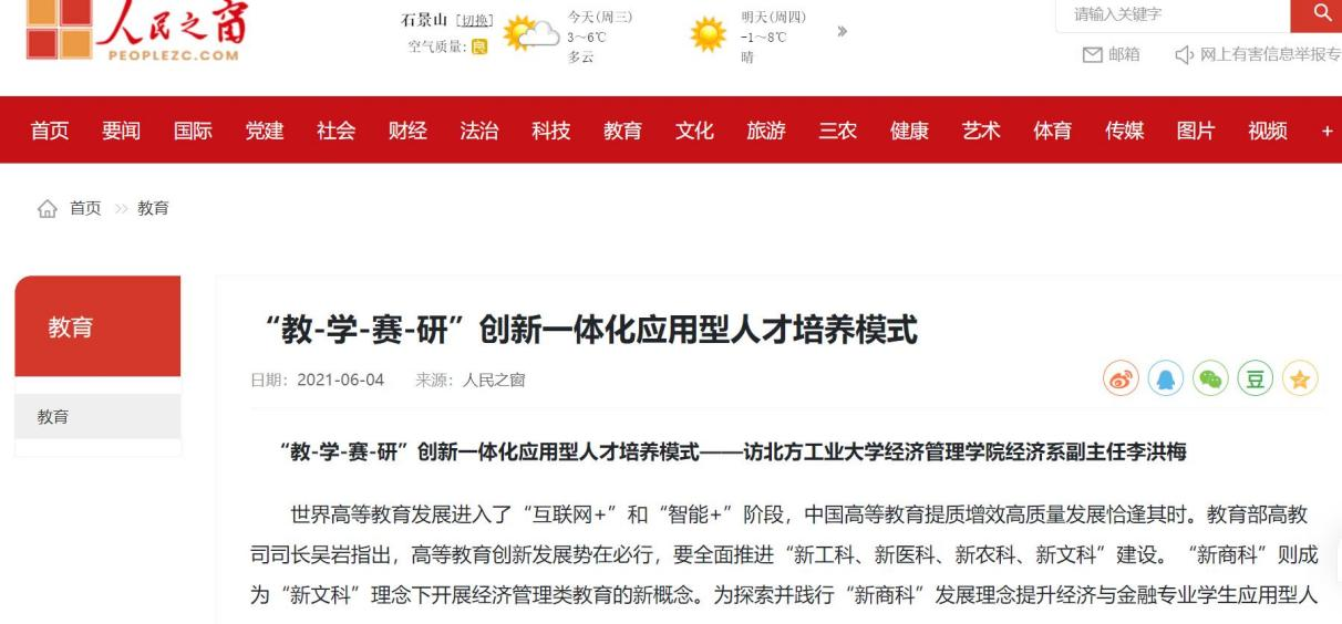 《人民之窗》报道经济与金融专业应用型人才培养模式 |