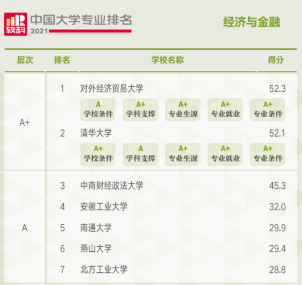 2021年软科中国大学专业排名—A类,全国第七