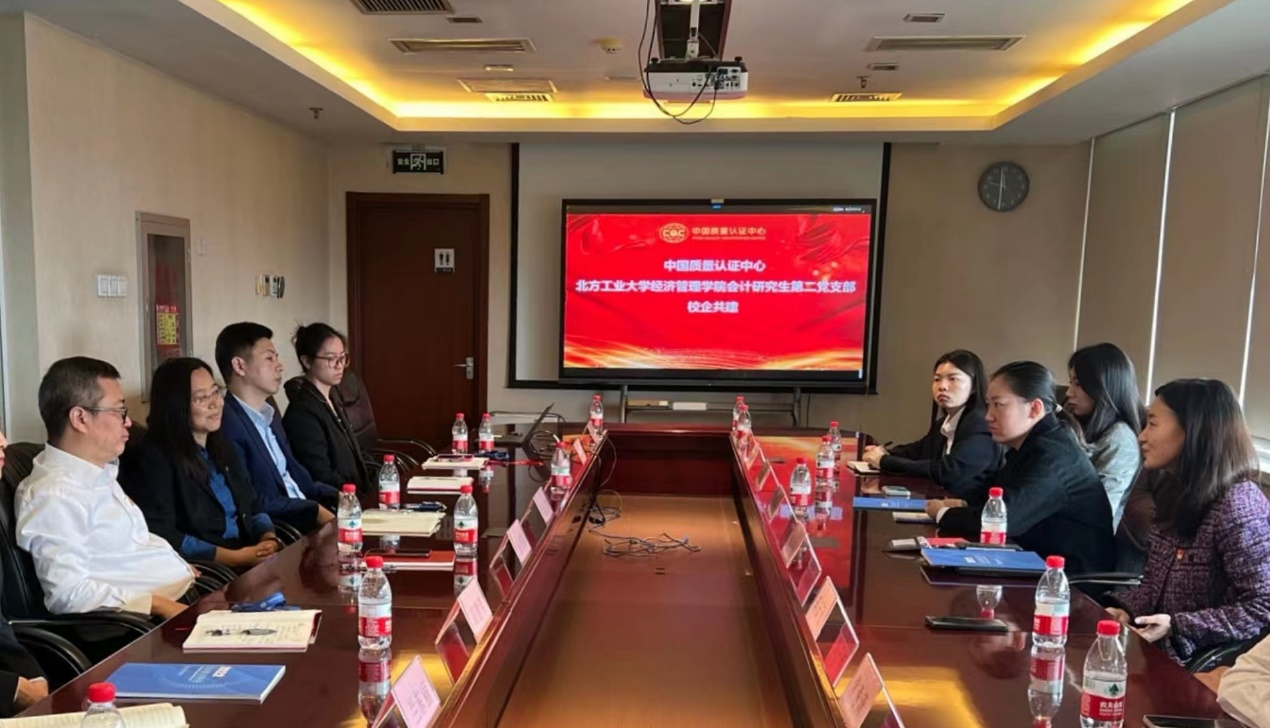 11月2日上午,sunbet会计研究生第二党支部在支部书记黄晓蓓副教授的带领下,赴中国质量认证中心(以下简称CQC)召开“党建引领促发展,校企合作开新篇”红色“1+1”共建活动。支部学生党员代表与CQC财务总监潘寒阳、财务部党支部书记武芹等相关人员组织了座谈交流会。