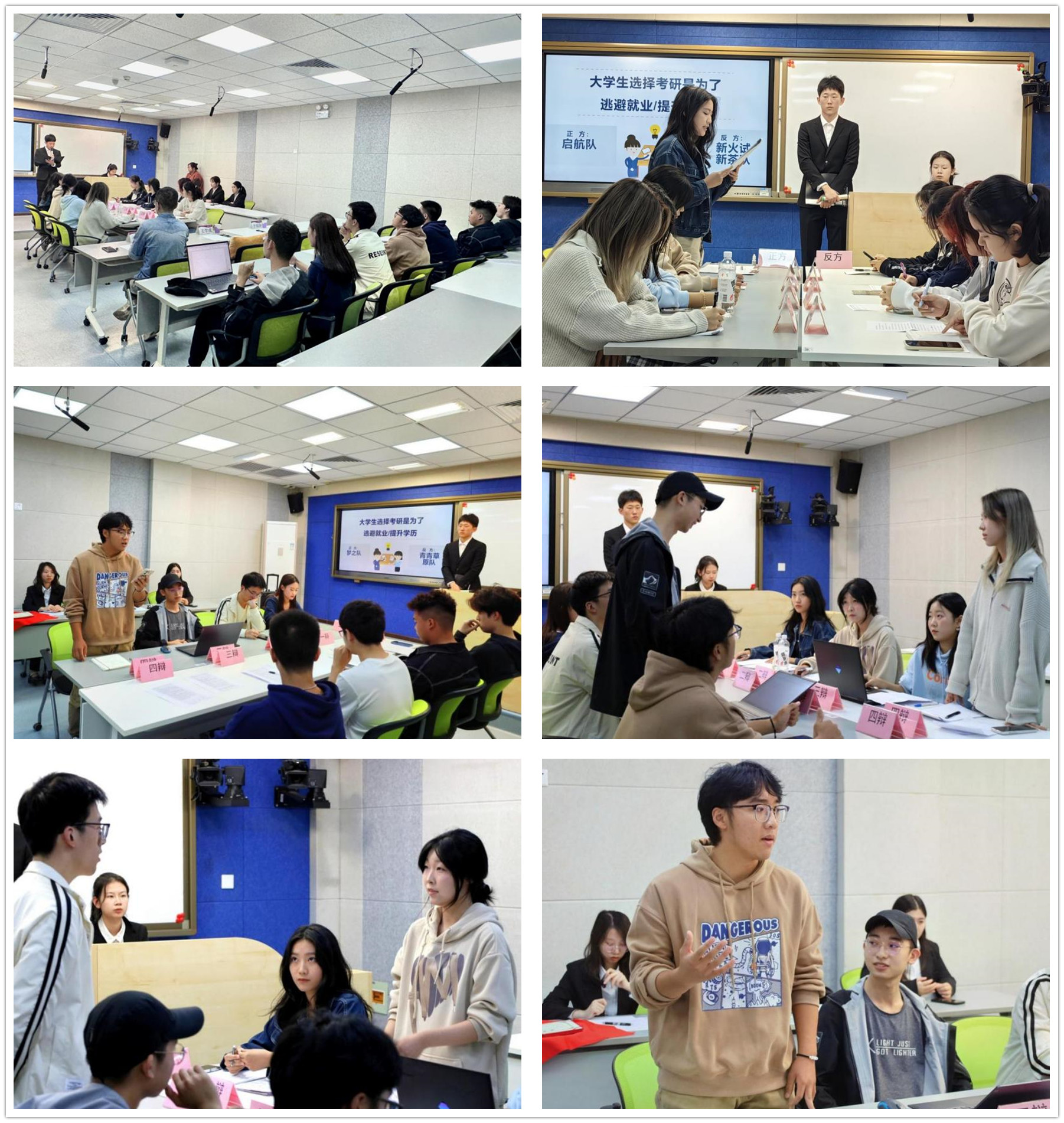 经过初赛激烈角逐,最终四支队伍晋级复赛。新生同学们围绕大学生考研究竟是为了逃避就业还是为了提升学历展开了激烈的探讨。经过精彩的辩论,梦之队与起航队两支队伍成功晋级决赛。在决赛阶段,辩题现场发布,每队成员有十五分钟的时间进行讨论和准备,辩题为大学生就业是该基于兴趣还是该基于社会需要。
