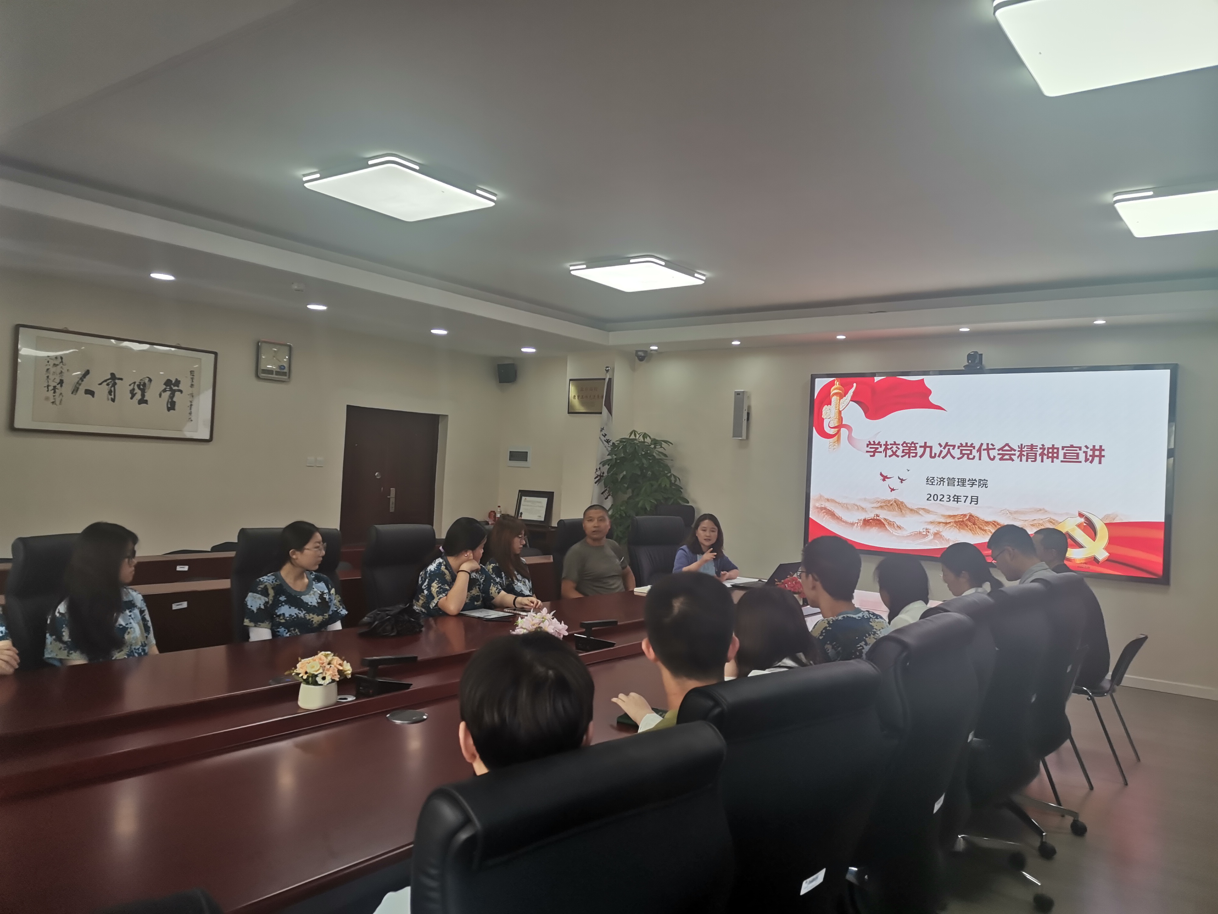 为深入学习贯彻学校第九次党员代表大会精神,把思想和行动统一到校党委要求和部署上来,在学生中凝聚起爱校兴校荣校精神,激发奋斗情怀,7月4日下午,sunbet在励学楼201会议室组织学生代表认真学习会议精神。学院各年级辅导员、学生骨干代表共计20余人参加此次活动。