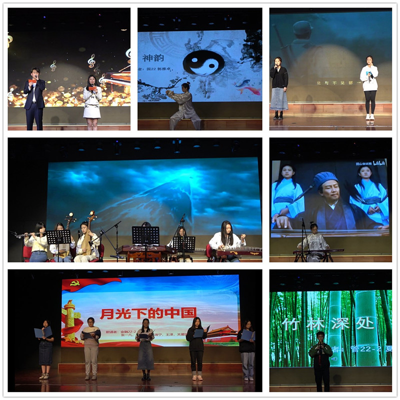 在活动前,22级上台展示的同学进行了精心准备。活动现场,22级的同学们大显身手,既有清脆响亮的歌声,也有长笛、葫芦丝、二胡、琵琶、古筝、钢琴等各类乐器的优美旋律,还有太极拳、诗朗诵、舞蹈等才艺展示。活动现场气氛热烈活跃,不时爆发出阵阵欢呼声。朗诵《月光下的中国》、歌唱《如愿》、民乐《大鱼》、太极《神韵》、歌唱《稻香》、舞蹈《Antifragile》、钢琴《水边的阿狄丽娜》、古琴《卧龙吟》、葫芦丝《竹林深处》等节目精彩纷呈。二教大叔李海涛带来了一曲《像风一样自由》,嘹亮的嗓音将活动推向高潮。