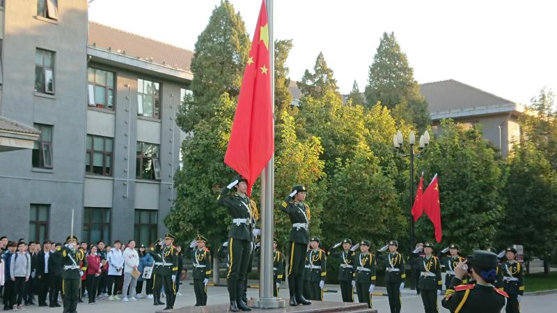 10月8日清晨,sunbet迎着晨光举行了庄重的升旗仪式。学院党委副书记赵洁老师、全体辅导员老师以及团学成员和18级全体学生参加了此次活动。