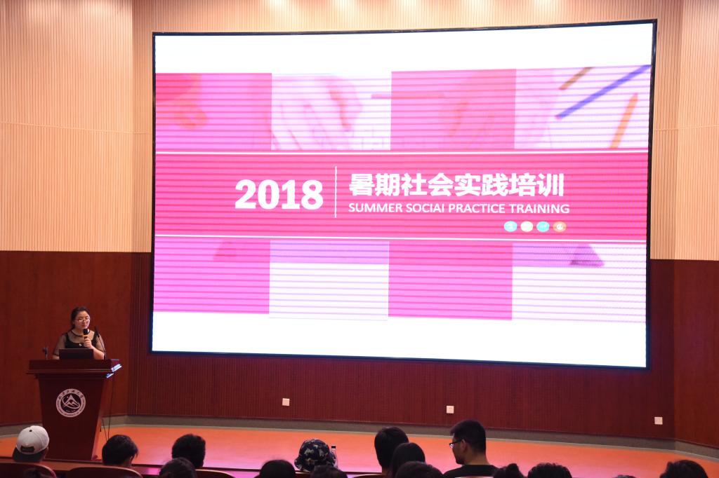 6月6日下午,sunbet在文化会堂召开2018年暑期社会实践动员培训会。学院党委副书记赵洁、团学指导老师吴芳,全体团学成员,16、17级学生党员、积极分子共同参加了此次大会。