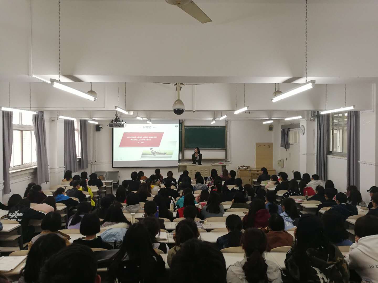 4月9日下午,经管团校组织本学期第三次团课,此次团课邀请到了2017年我院成功考取中国人民大学研究生的马文月同学就大学目标的选择与个人规划与大家进行交流,学院党委副书记赵洁、辅导员赵灯兵,全体团学干部以及16级、17级部分学生参加了此次活动。
