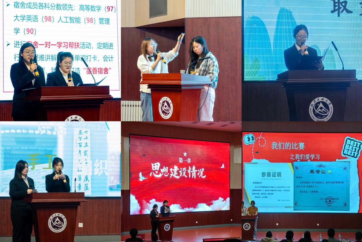 答辩环节,各宿舍代表全方位展示宿舍风采。他们从宿舍特色、学习风貌、任职情况、志愿服务、未来展望等多个维度出发,娓娓道来一个个关于青春、成长与梦想的动人故事。字里行间,不仅勾勒出宿舍生活的独特画卷,更生动展现了宿舍成员团结互助、积极进取的精神风貌。