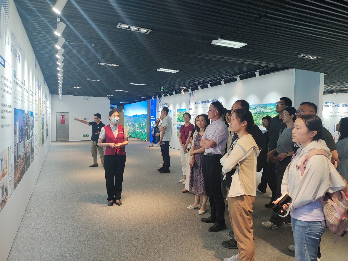 观影结束后,党员们移步至一层大厅,跟随馆内讲解员的生动导览和引领进行参观学习,讲解员向大家介绍了首都城市作为全国政治中心,文化中心,国际交往中心和科技创新中心的战略定位和建设国际一流的和谐宜居之都的发展目标以及实施人口规模、建设规模双控的城市规模。