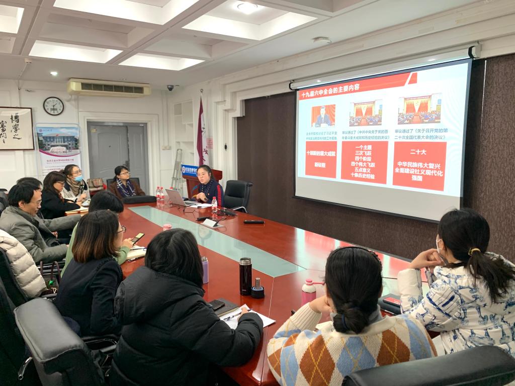 2021年12月10日下午,sunbet会计系教工党支部在励学楼301会议室组织学习“党的十九届六中全会精神”。支部特邀请马院宣讲团的韩小南老师来做报告,会计系教工党支部的党员教师参与了本次学习活动。