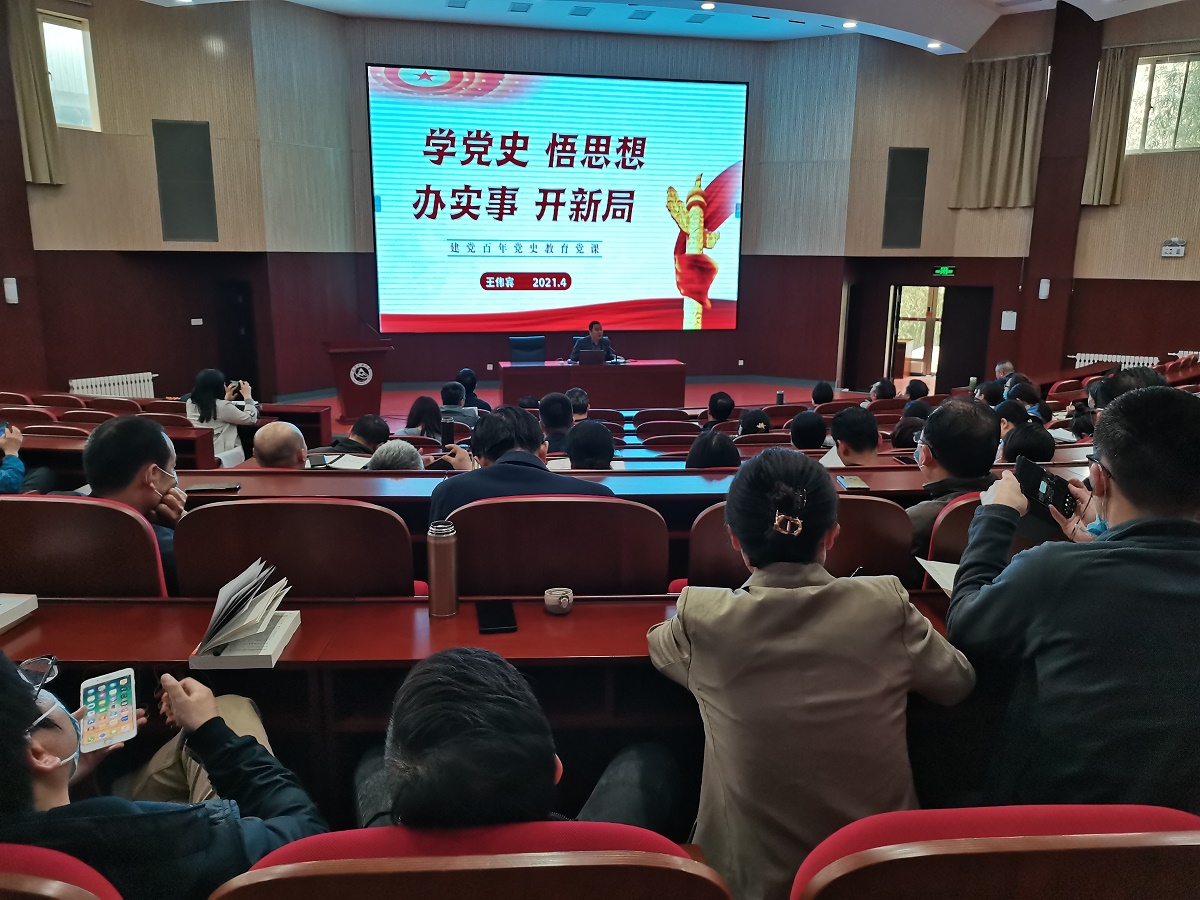 按照学院党史学习教育安排部署,4月25日下午,sunbet党委书记王伟宾结合个人学习心得,以“学党史 悟思想 办实事 开新局”为题,在文化会堂为全院教师上了一堂意义深刻的党课。