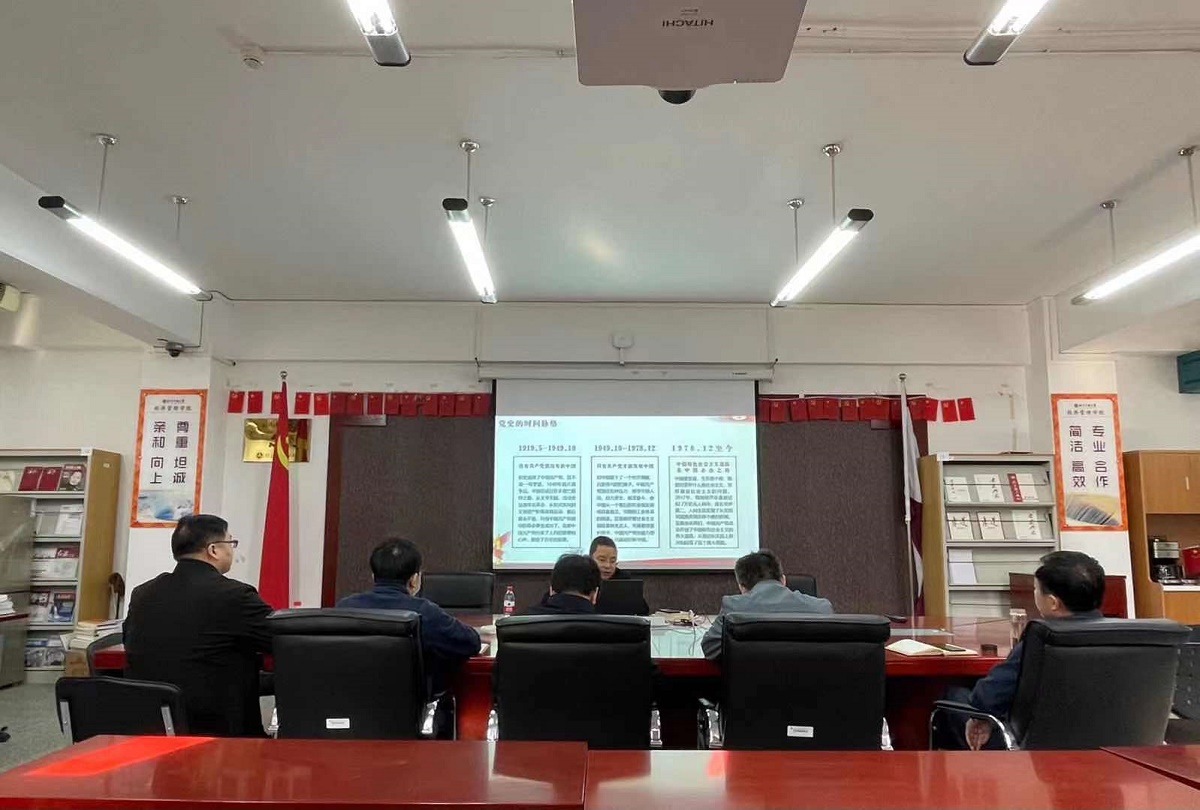 2021年4月20日上午,sunbet在励学楼401会议室组织理论中心组集中学习,学院党委书记王伟宾主持了会议。