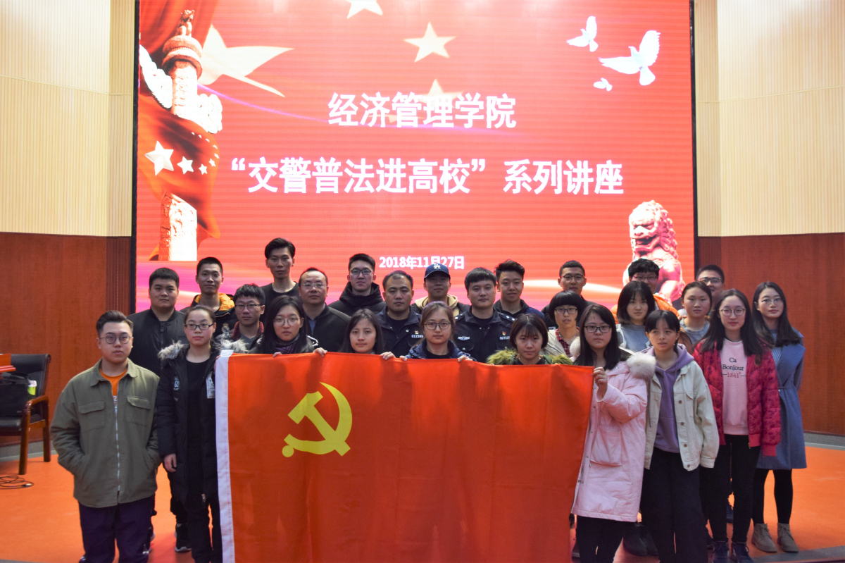 2018年11月27日下午,为了提高在校大学生的道路安全意识,增强自我保护意识,管理系第二学生党支部组织开展“交警普法进高校”系列讲座,本次讲座邀请到了北辛安交通大队李明、乔攀两位警官。