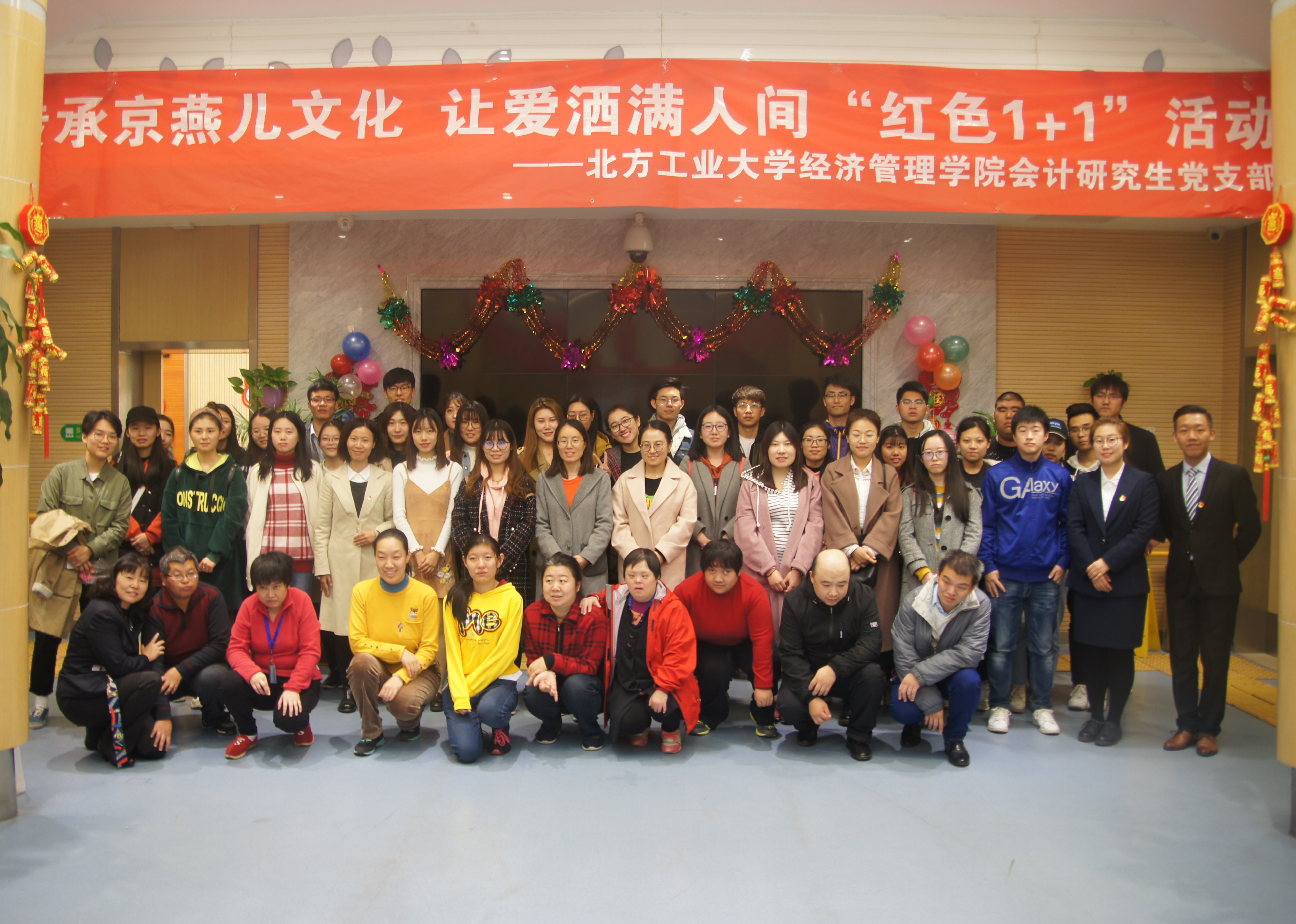2018年11月1日下午,sunbet会计研究生党支部赴北京金融街街道残联职康站开展“传承京燕文化,让爱洒满人间”红色1+1活动,来自会计研究生党支部的四十名党员、预备党员和积极分子参与了本次活动。