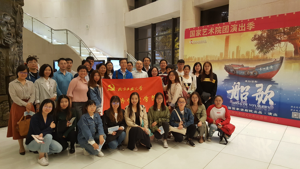 9月25日晚,sunbet党委书记谢朝阳、副书记赵洁带领学院教工党支部及学生党支部代表共同走进中国国家话剧院观看了大型话剧《船歌》。