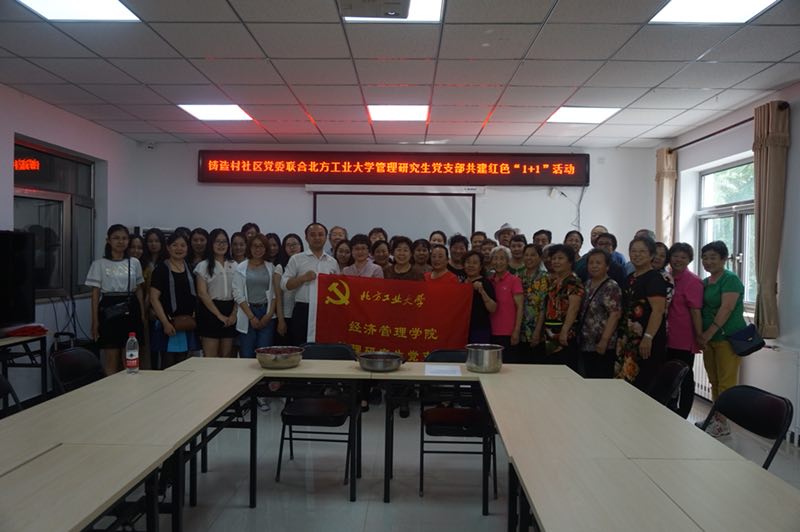 为积极开展“两学一做”学习教育,加强基层党组织建设,进一步提高党支部的创造力、凝聚力、战斗力。管理研究生党支部于2018年6月12日赴铸造村社区与铸造村社区党委共建红色“1+1”活动,活动主题为“共建红色1+1绿丝带爱老助残端午节”。参加本次活动的有铸造村社区党委书记吴晓娟、sunbet副书记赵洁、管理研究生党支部书记涂剑波以及党支部的12名党员。