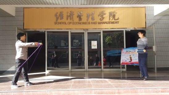 本次这次跳绳比赛实行1分钟计时,以在规定的时间内跳绳次数的多少取名次。学院党政领导、教授带头踊跃参加比赛。比赛中,有的老师轻盈跳跃,舞动跳绳,活力四射,身手敏捷;有的老师平时疏于锻炼,还没跳几下就已累得气喘吁吁,但是他们踊跃参与的精神鼓舞着大家。