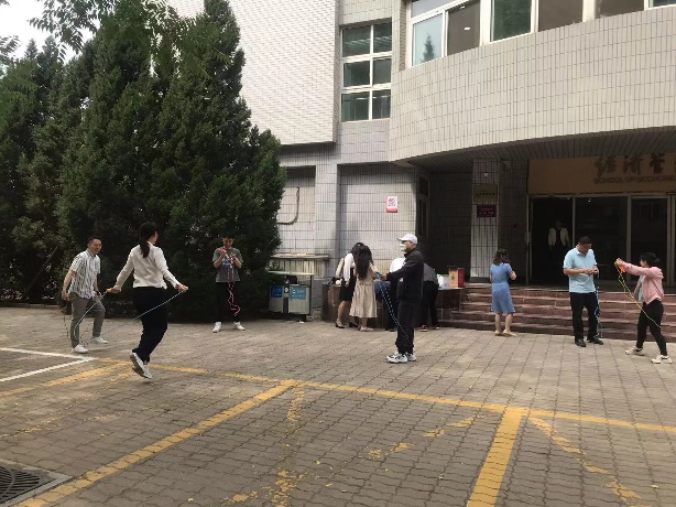 2023年5月11日学院分工会举办了跳绳健身活动,为即将到来的春季运动员做好赛前热身、科学组队准备。当天,学院近半数老师先后来到励学楼东门参加活动。他们有的练习跳绳已有多年,有的则是第一次跟别人一起跳。虽然大家都战战兢兢,但仍然面带微笑,展现出兴奋的心情。一些老师展现出了较高的跳绳水平,给人留下了深刻的印象。此次活动不仅促进了老师们的健康生活意识,也增强了团队合作精神。