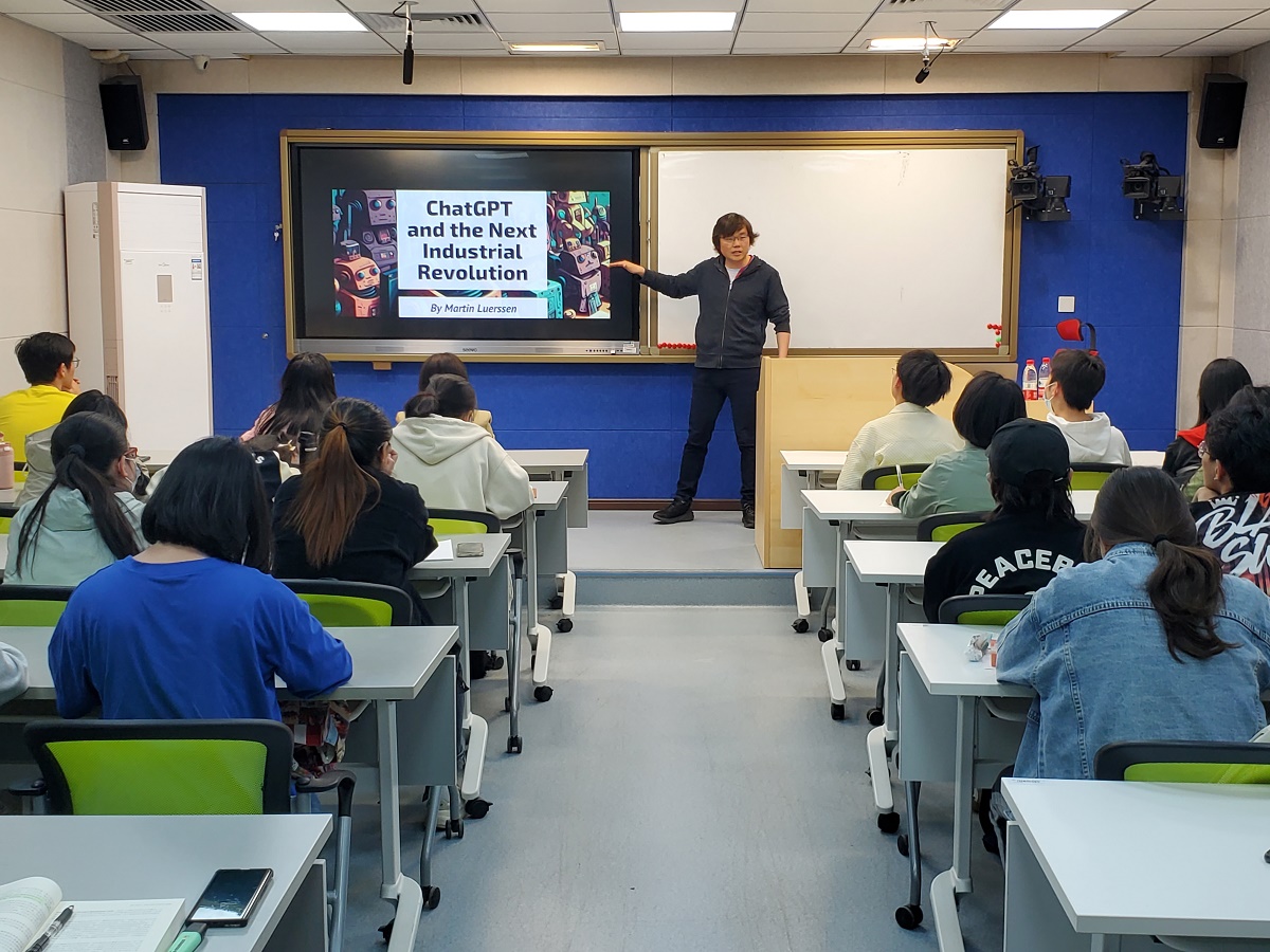 柯罗马老师从ChatGPT、Midjourney等近期热议话题入手,生动形象地对大学生创业的机会、挑战等内容进行了解读,并提出创业趋势的三方面转变:创业方向从互联网转向硬科技;创业主体从草根创业转向高校创新;创业模式从学生单干转向师生共创,给同学们启发了一些新思路。讲座结束后,柯罗马老师与同学们展开了关于创业方向、创业团队建设等多方面的交流。同学们提问踊跃,柯老师一一进行解答,也提出了很多有效建议。活动结束后,很多同学表示意犹未尽,并留下继续咨询。